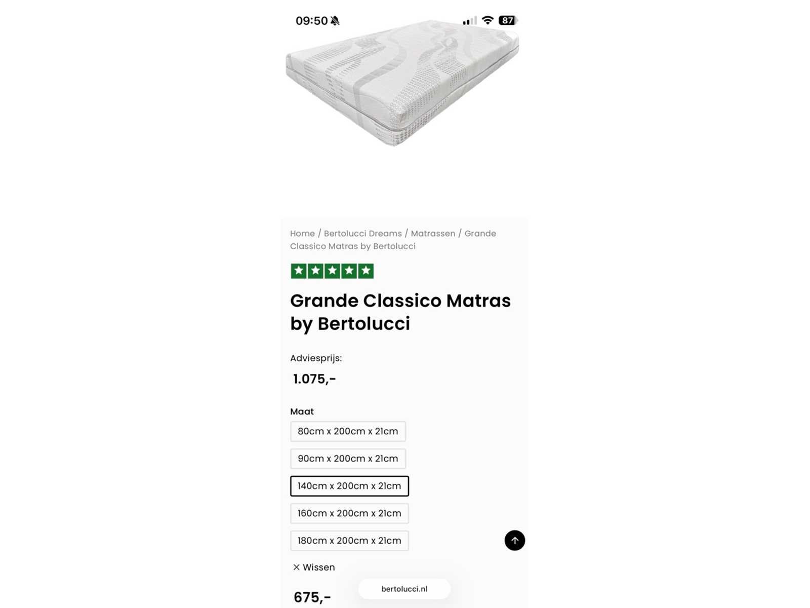 Bertolucci - grande classico 140x200x21cm - matras