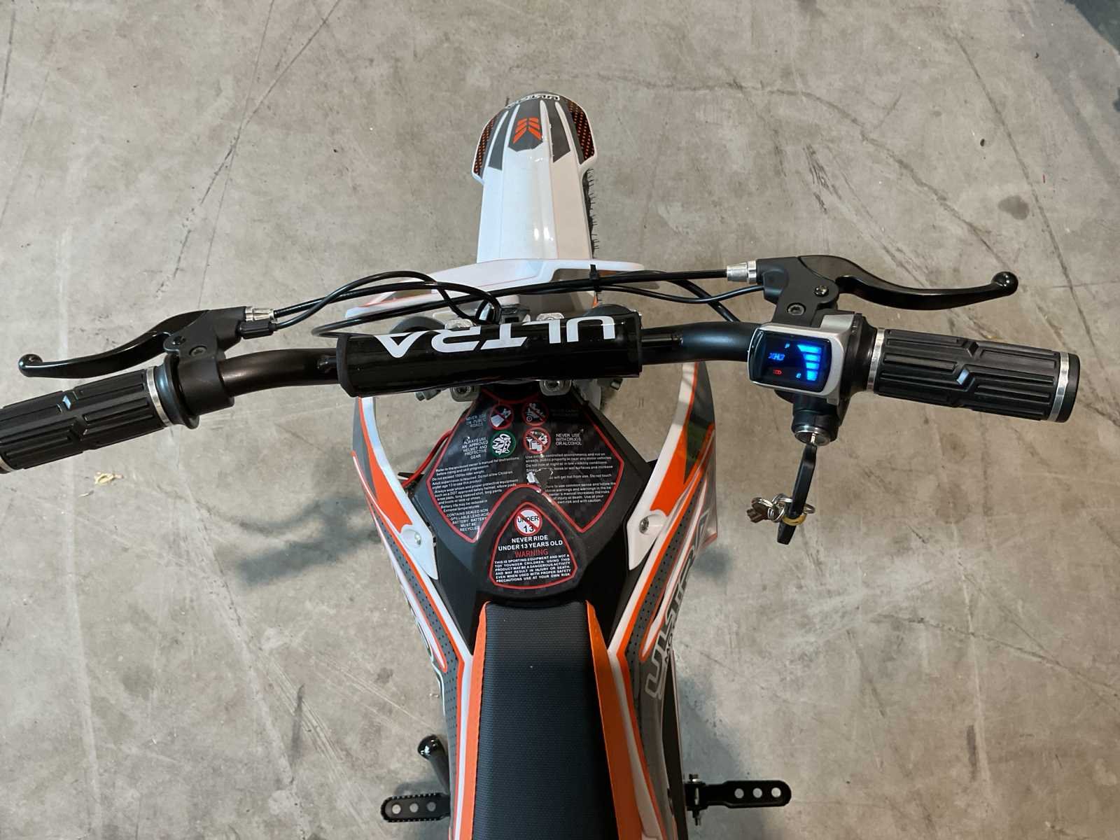 Voorzien van Motorvermogen: 1000 W elektrische motor; Voedingsspanning: 36 V; Topsnelheid: ± 35 km/u (snelheid in 3 standen instelbaar via sleutel); Zadelhoogte: ± 61 cm; Afmetingen (L×B×H): ± 120 × 80 × 56 cm (gemonteerd); Eigen gewicht: 40 kg; Max. belasting: 65 kg; Ongebruikt Merk: Ultra Motocross Model: DB07E OR Type: 1000W Gewicht: 38kg Kleur: Oranje Bouwjaar: 2025