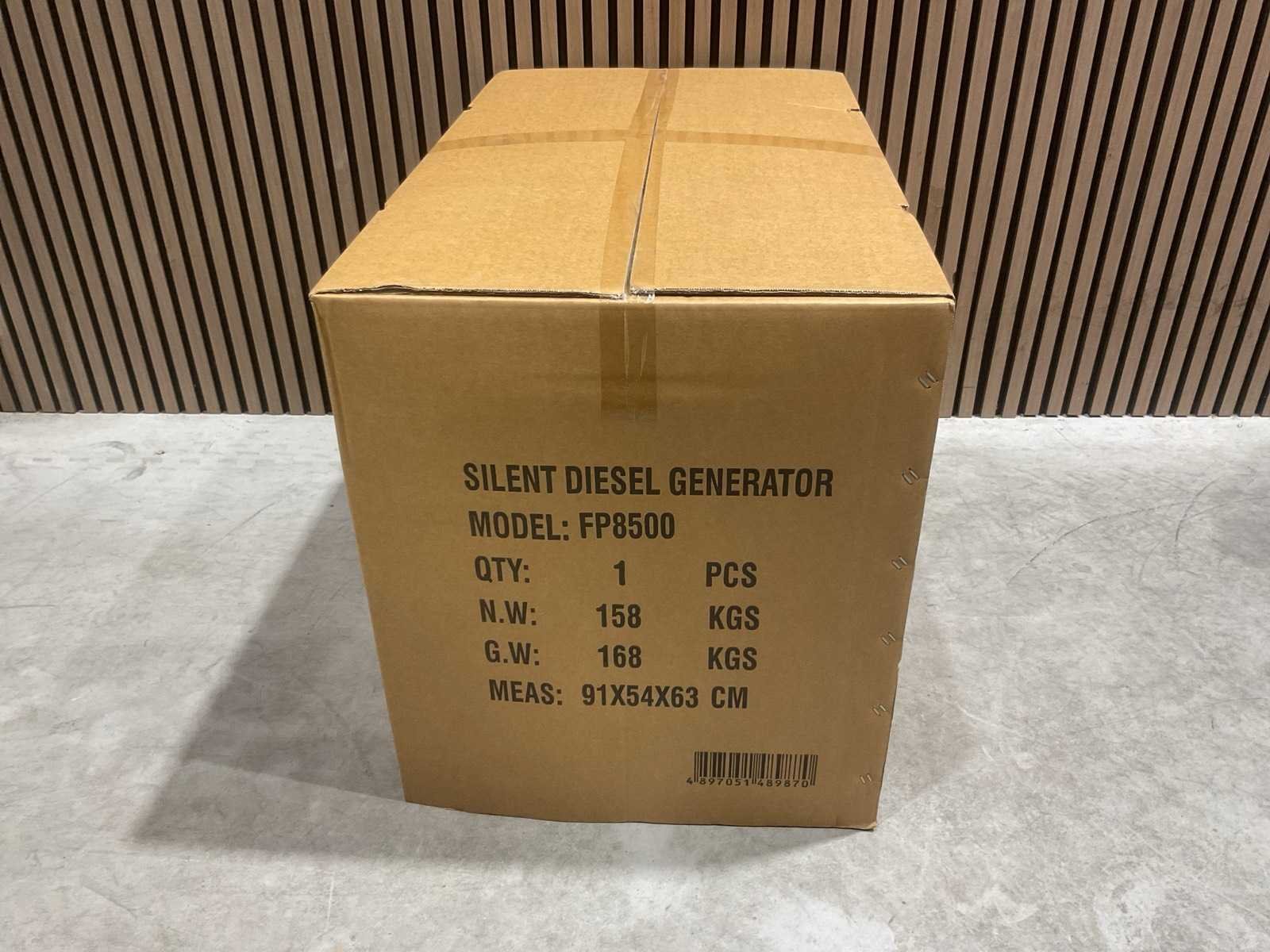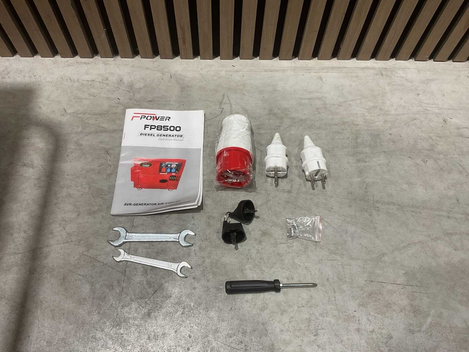 Voorzien van Frequentie: 50 Hz; Spanning: 220V / 380V (1-fase & 3-fase); Maximaal vermogen: 6,5 kW; Power factor: 1.0; Spanningsregeling: AVR (automatisch); Motortype: 4-takt dieselmotor; Koeling: Luchtgekoeld; Injectie: Directe diesel-injectie; Start: Elektrisch; Transport: 168 kg (91x54x63) cm; Ongebruikt Merk: Fpower Type: FP8500 Diesel: true