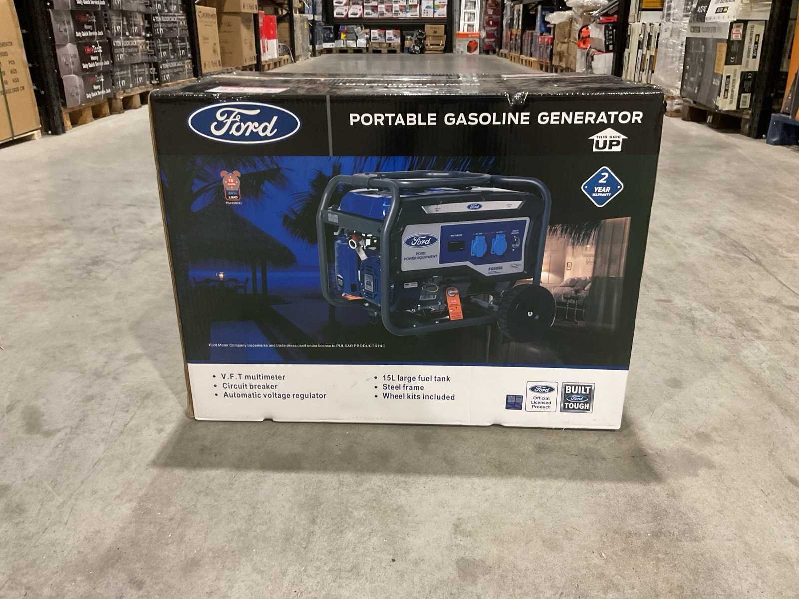 Voorzien van Brandstof Benzine motor; Brandstof consumptie 0.7 l/h; Frequentie 50 Hz; Geluidsniveau 90 dB; Tank inhoud 15 l; MPN (Manufacturer Part Number) FG5050; Vermogen 2800 W; Voltage 230 V; Vereidbaar met 2 wielen; Ongebruikt in doos Merk: Ford Type: FG5050 Bouwjaar: 2025 Benzine: true Type motor: 208cc OHV, 4-takt, luchtgekoeld Motorvermogen (kW): 2.5kW Luchtgekoeld: true Handboek aanwezig: true Machinegewicht: 50kg Totale afmeting L: 670mm Totale afmeting Breedte: 465mm Totale afmeting Hoogte: 510mm