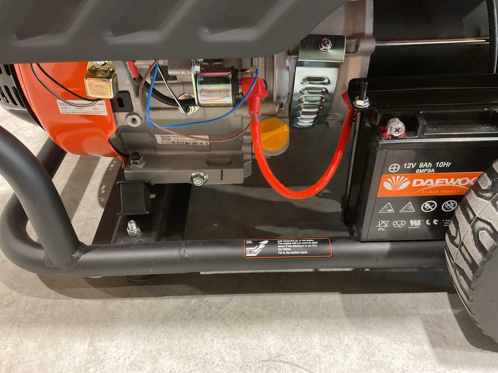 Voorzien van 25 liter brandstoftank; Benzine Euro 95 4-takt; Motor: 420cc, 15 pk; luchtgekoeld; 3000 toeren per minutt; Sleutelloze elektronische start; Uitgangen: 220/240V; 220/380/415V; 2 wielen; Ongebruikt in doos (Afmeting transport verpakking 750x700x610 mm lxbxh, gewicht 91 kg) Merk: Daewoo Type: GDAX9250E-3 Bouwjaar: 2025 Capaciteit.: 6.5kVA Benzine: true Aantal cilinders: 1 Motorvermogen (kW): 6.5kW Luchtgekoeld: true Mobiel: true Handboek aanwezig: true Machinegewicht: 91kg Totale afmeting L: 765mm Totale afmeting Breedte: 590mm Totale afmeting Hoogte: 575mm
