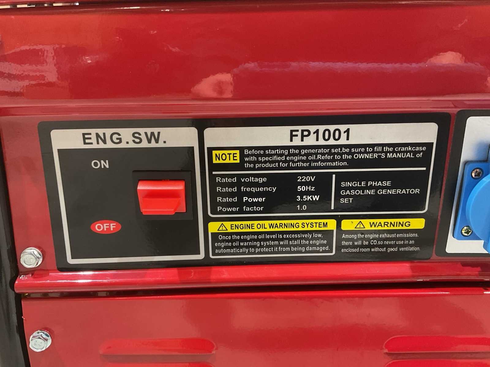 Voorzien van Vermogen: 3,5 kw; Benzine motor; luchtgekoeld; trekstart; Spanning: 220V; Frequentie: 50 / 60 Hz; Vermogensfactor: 1.0; stalen frame; ongebruikt in doos Merk: Fpower Type: FP1001 3,5kW Luchtgekoeld: true