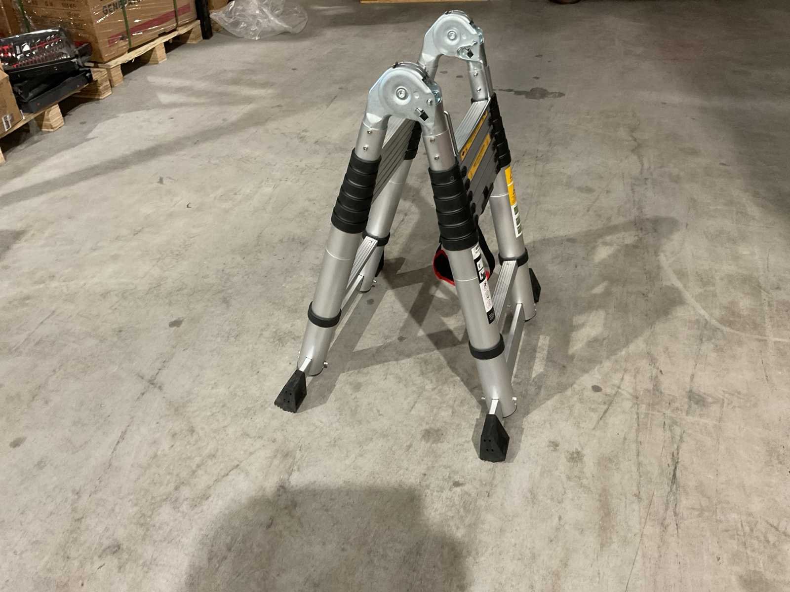 Voorzien van anti slip tredes; veiligheid band; ongebruikt in doos (transport afmetingen 90x50x20 cm) Merk: Elite Type: Vario 2x2,2 m Bouwjaar: 2025 Aantal treden: 16 Eigen gewicht: 18kg