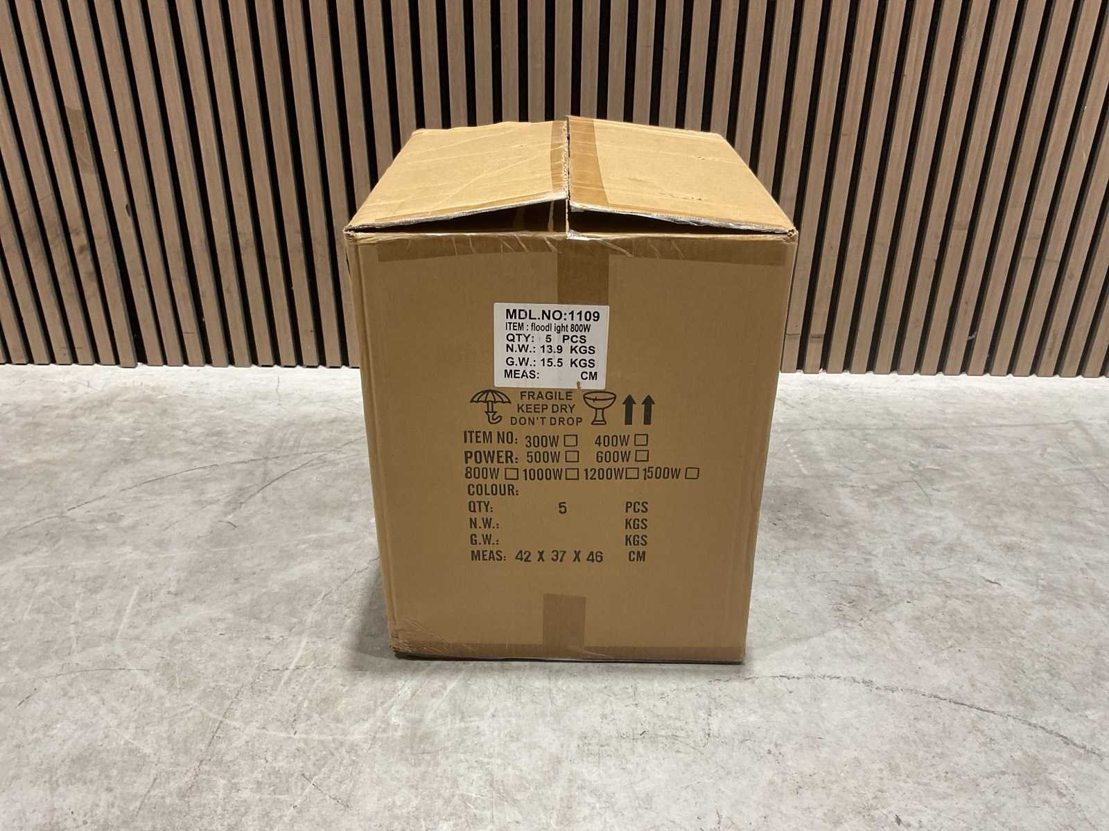 Voorzien van Per doos van 5 stuks; Transport afmeting: 42x38x47cm; gewicht: 16,4kg; ongebruikt in doos Merk: Led Flood Light Model: 1109 Product type: 800watt