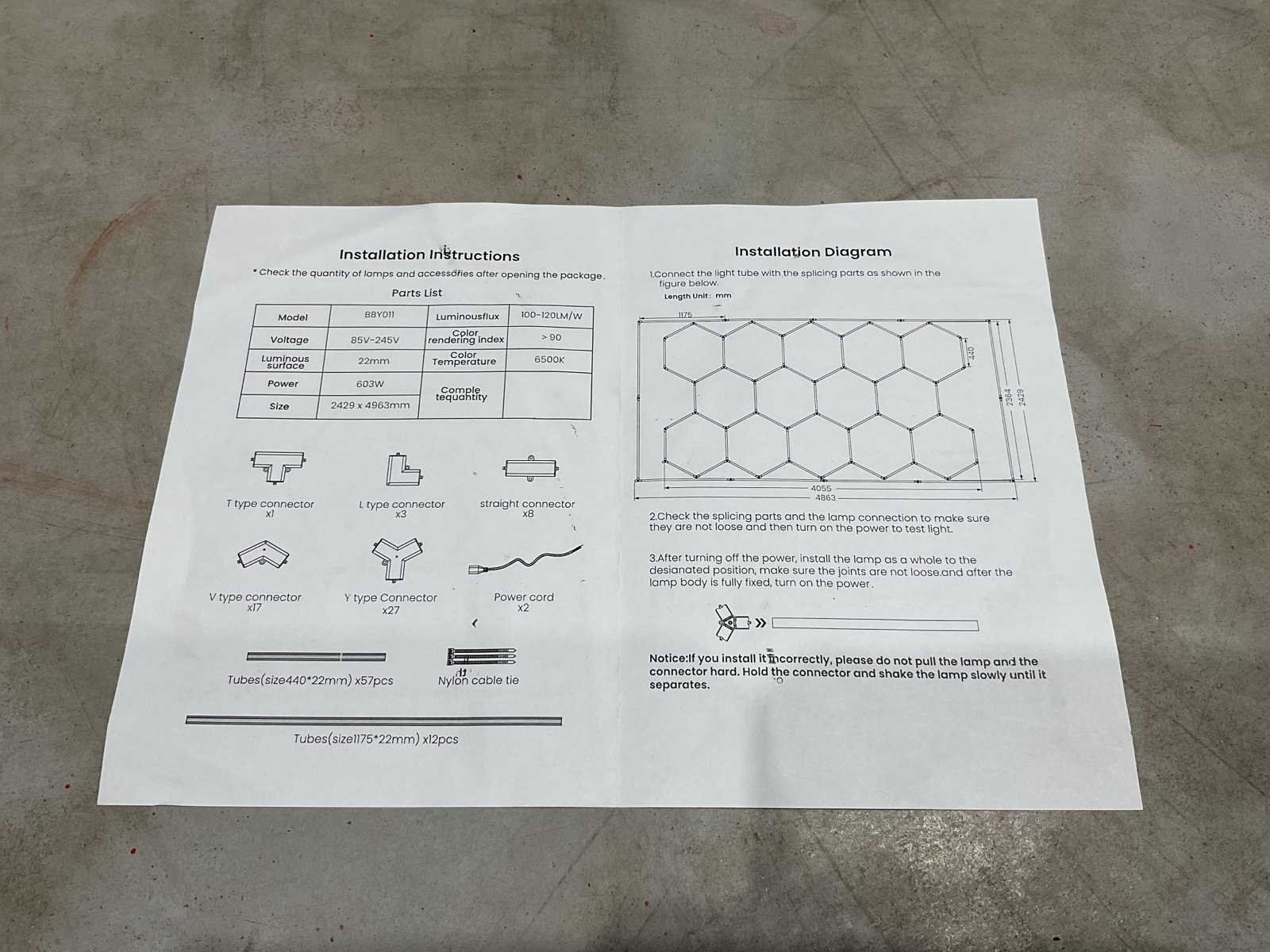 Voorzien van Kleurtemperatuur (CCT): 6500K; Kleurweergave-index (CRI): >90; Afmetingen: 4840x2420mm; Ongebruikt in doos Merk: Contation Model: BBY011 Gewicht: 8.6kg Lengte: 121cm Breedte: 21.5cm Hoogte: 19cm