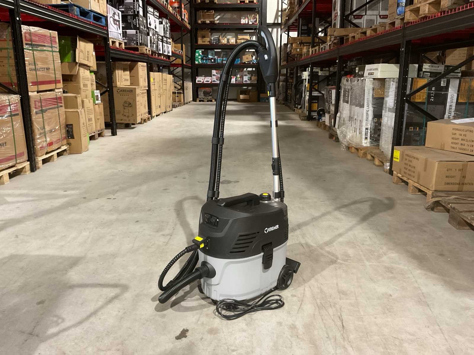 Voorzien van nat en droog functie; bescherming tegen oververhitting; Nat- en droog stofzuiger; Stoom functie; Sproei functie; Inhoud 30 Liter; Kunststof Ketel; 2100W; 2 Zwenkwielen; 2 Starre wielen spray en zuig functie; Ongebruikt in doos (Afmeting transport verpakking 615x435x545 mm lxbxh, gewicht 13.8 kg) Merk: Kremer Type: KR35S Bouwjaar: 2025 Capaciteit.: 30l/hr Mobiel: true Vermogen: 2100kW Aansluiting: 220V Eigen gewicht: 13.8kg Totale afmeting L: 615mm Totale afmeting Breedte: 435mm Totale afmeting Hoogte: 545mm