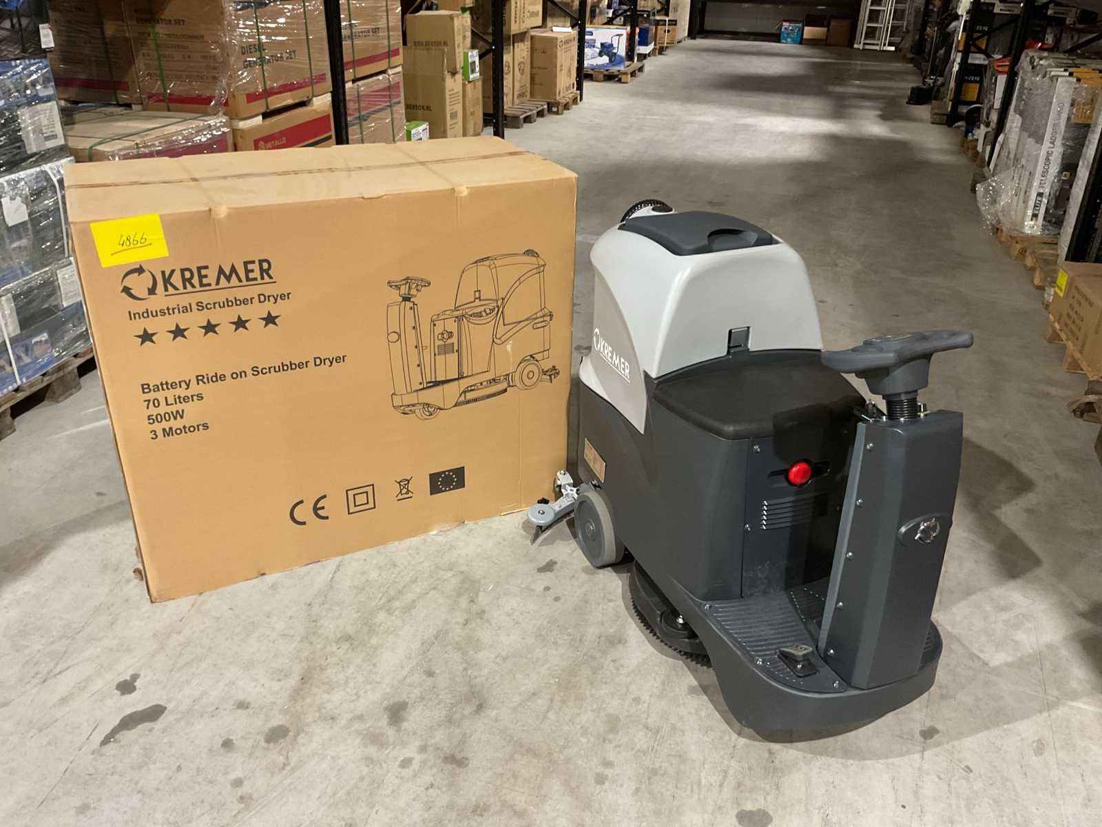 Voorzien van 70 ltr schoon water tank; 70 ltr riool water tank; Zuigbreedte 80cm; reinigingsvermogen 3500 m2/u; Batterij duur 240 minuut; Oplaadbare accu; Accu stroom indicator; accu lader; Oplaadtijd: 8 uur; Handrem; Ongebruikt in doos (Verpakkings afmetingen 620x1110x1310 mm bxhxl, gewicht 220kg) Merk: Kremer Type: KR-FR70 Bouwjaar: 2025 Werkbreedte: 800mm Elektrisch: true Aansluiting: 24V Accu lader: true Oplaadbaar: true Eigen gewicht: 220kg Totale afmeting L: 1310mm Totale afmeting Breedte: 620mm Totale afmeting Hoogte: 1080mm