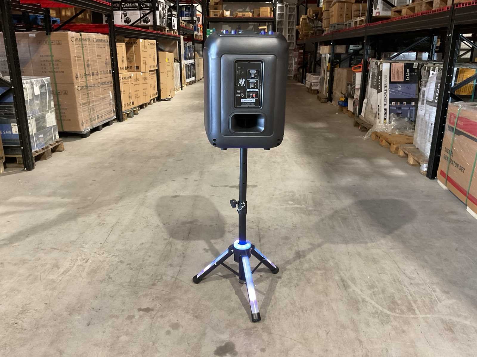 Voorzien van 40w speaker; 12” speaker Horns; Aansluitingen: USB, TF card, BT, AUX; Draadloze microfoon; afstandsbediening; Party verlichting; meerdere microfoon aansluitingen; Speaker standaard met verlichting; Ongebruikt in doos. Merk: Soundman Type: SM-B1222 Bouwjaar: 2025 Vermogen: 40W Aansluiting: 7.4V Totale afmeting L: 505mm Totale afmeting Breedte: 383mm Totale afmeting Hoogte: 530mm Eigen gewicht: 9.6kg