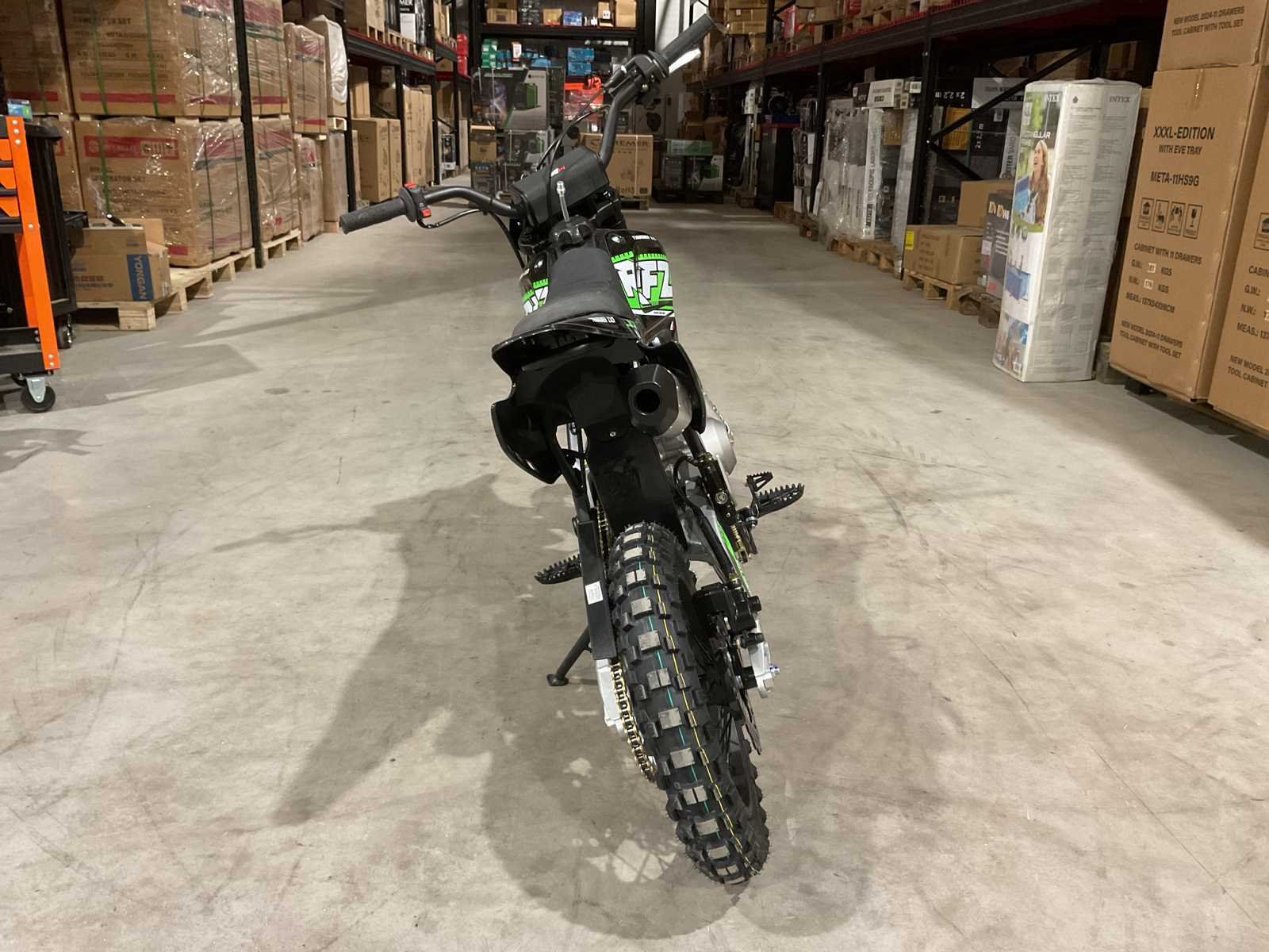 Voorzien van 110 cc motor; 4 takt; kick start; bandenmaat voor 14” inch achter 12” inch; hydraulische vering voor en achter; schijfremmen; verlichting; ongebruikt in doos (transport afmetingen 130x40x70 cm) Merk: Ultra Motocross Type: Thunder 110 GR Brandstof: Benzine Cilinderinhoud: 110cc Gewicht: 83kg Kleur: Groen Transmissie: Automaat Aantal sleutels: 2