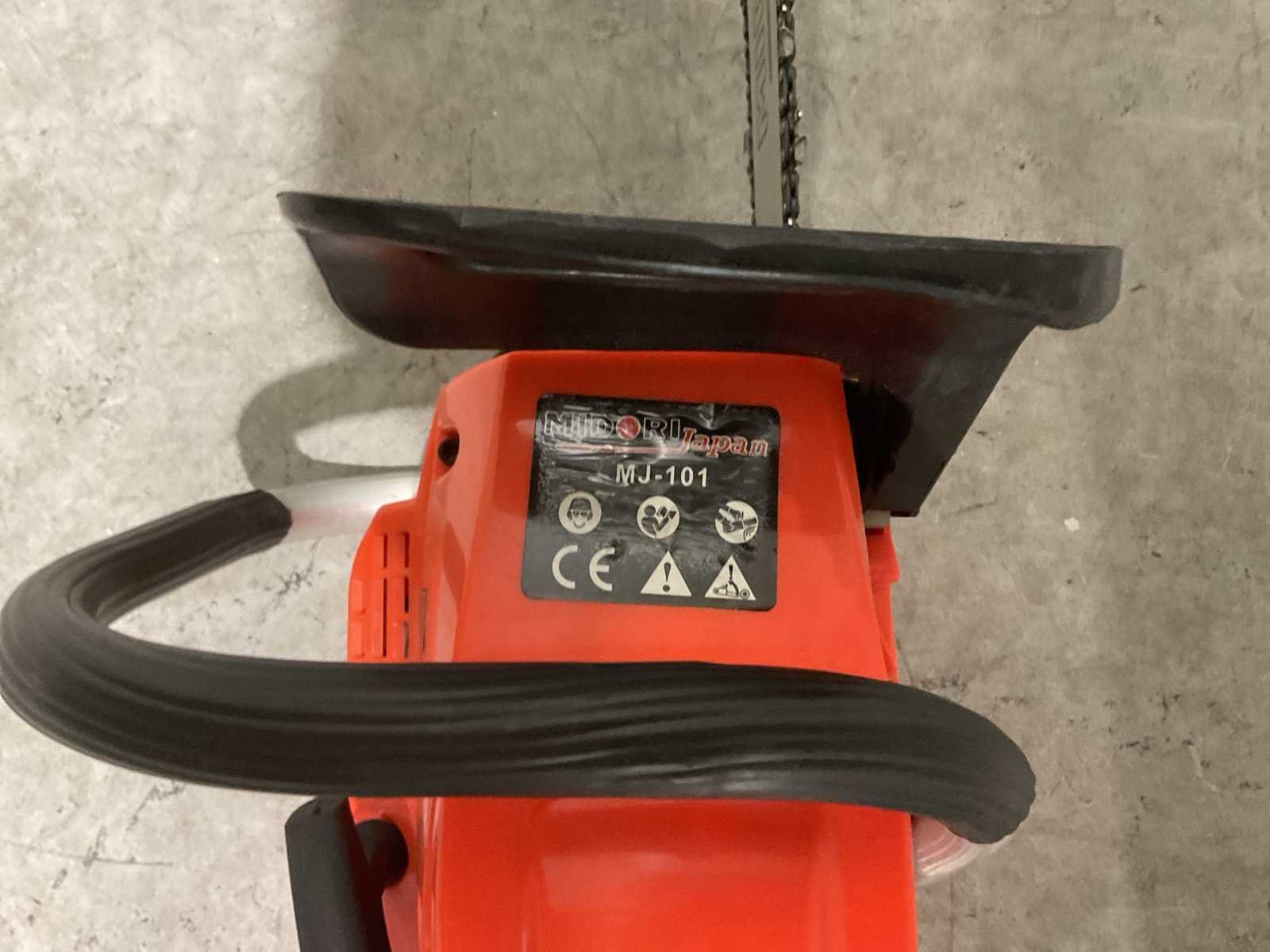Voorzien van Brandstoftank : 550 ml; Olietank : 260 ml; Motorinhoud 52cc; Maximale toerental : 10.000 rpm; Vermogen : 2,9 kW / 3,9 km; Zaagbladlengte : 52 cm; Niet getest op functioneren Merk: Midori Japan Model: MJ-101 Product type: 2603061504