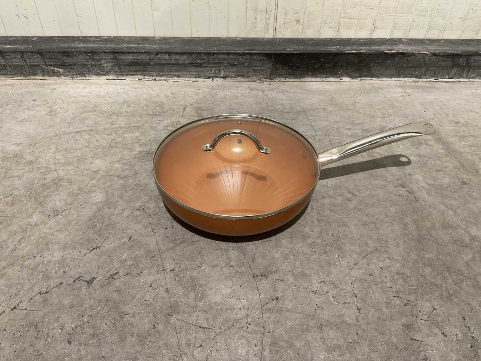 1,8kg 104x495x310mm met cool touch handgreep met vergrendelbare deksel geschikt voor alle warmte bronnen Merk: Swiss Pro+ Model: Pressed Aluminum Wok With Lid Kleur: koper Gewicht: 1,2g Lengte: 28cm Breedte: 28cm Hoogte: 12cm Materiaal: aluminium