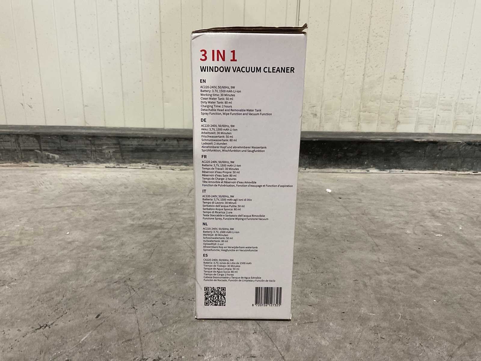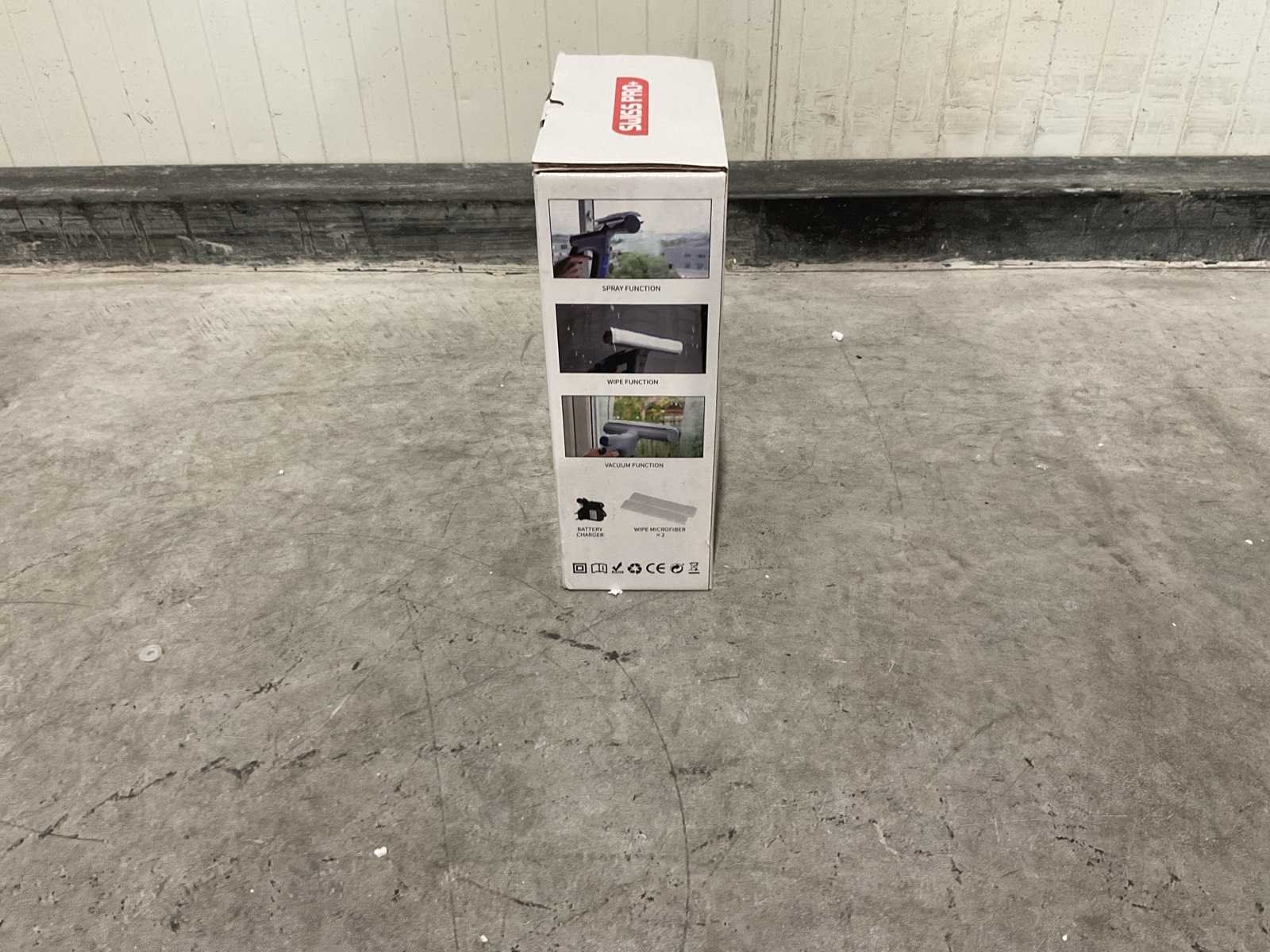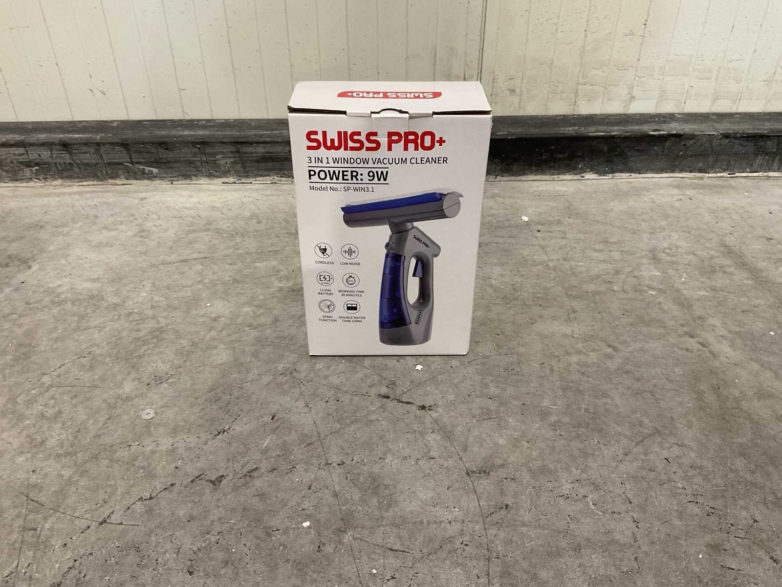 0,6kg 12*28*32 4PCS breedte zuigmond 28 cm smalle zuigmond breedte 17 cm vuilreservoir 130 ml looptijd accu 30-40 minuten oplaadtijd accu 155 minuten bruikbaar op, ramen, spiegels, tegels, glazen tafels, douchecabine en andere gladde oppervlaktes kleur: zwart ongebruikt in doos Merk: Swiss Pro+ Model: 3 in 1 Window Vacuum Cleaner Gewicht: 0,6kg Lengte: 12cm Breedte: 28cm Hoogte: 32cm