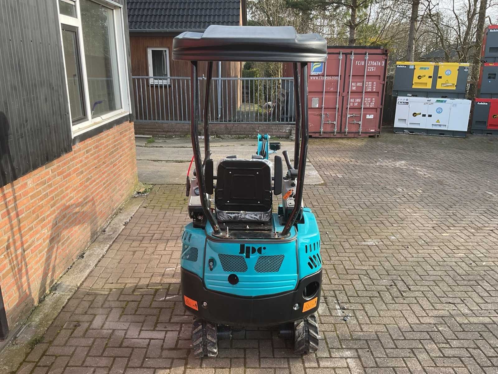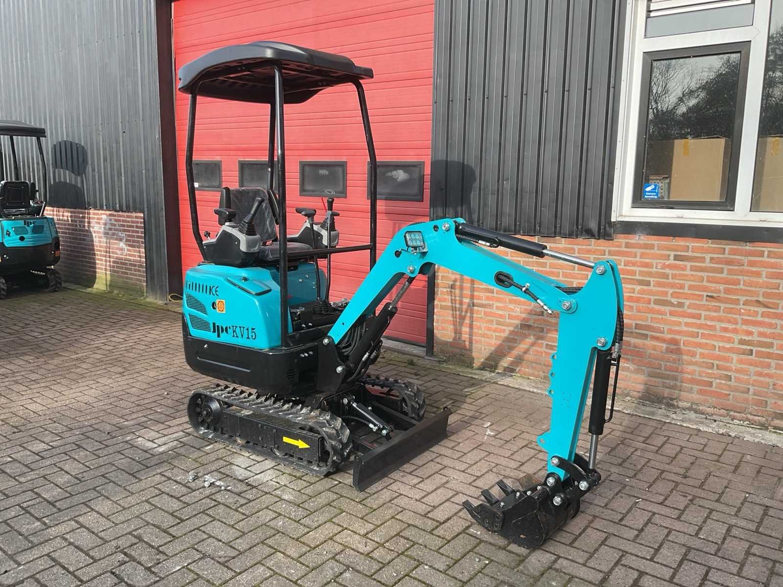 Voorzien van rupsaandrijving; 12 pk vermogen; Diesel motor; Bedrijfsgewicht: 1.500 kg; 2500x950x2200 mm LxBxH; Rubber tracks: 180 mm breed; Graafbak: 400 mm; 360° rotatie; Joystick / servo bediening; Werkverlichting; Elektronisch display; Ongebruikt Merk: JPC Type: KV15