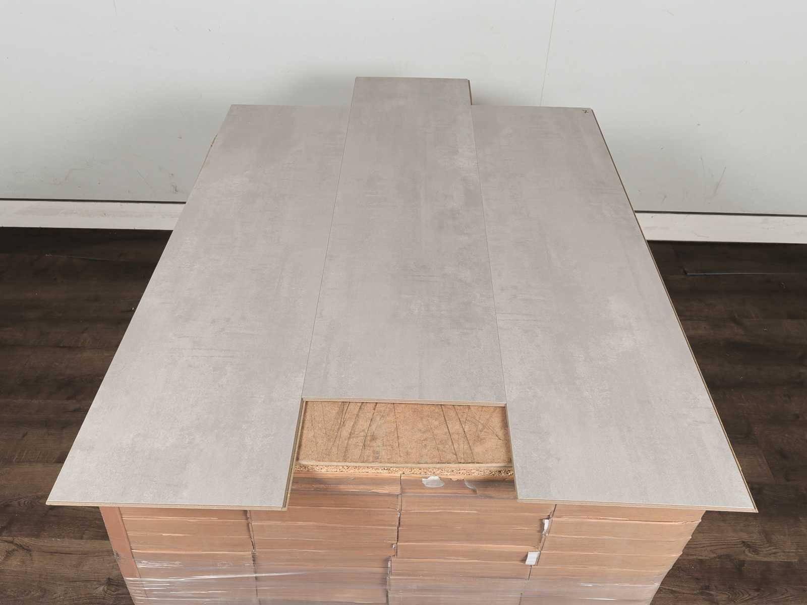 Kwaliteits laminaat vloer, watervast, dikte 8 mm, voorzien van clicksysteem, goed te combineren met vloerverwarming, kras en slijtvast, anti slip, gemakkelijk schoon te maken, warm en comfortabel, 35 pakken a 2,55 m2 Within 14 days Merk: Aqualine Product type: Laminaat Oppervlakte: 89m² Geschikt voor vloerverwarming: Ja V-groef: Ja Afwerking: Voelbaar structuur, anti slip, met v-groef Aantal m² per verpakking: 2.55m² Kleur: Concrete art pearl grey Gewicht: 525kg Lengte: 1290mm Breedte: 239mm Materiaal: HDF/MDF