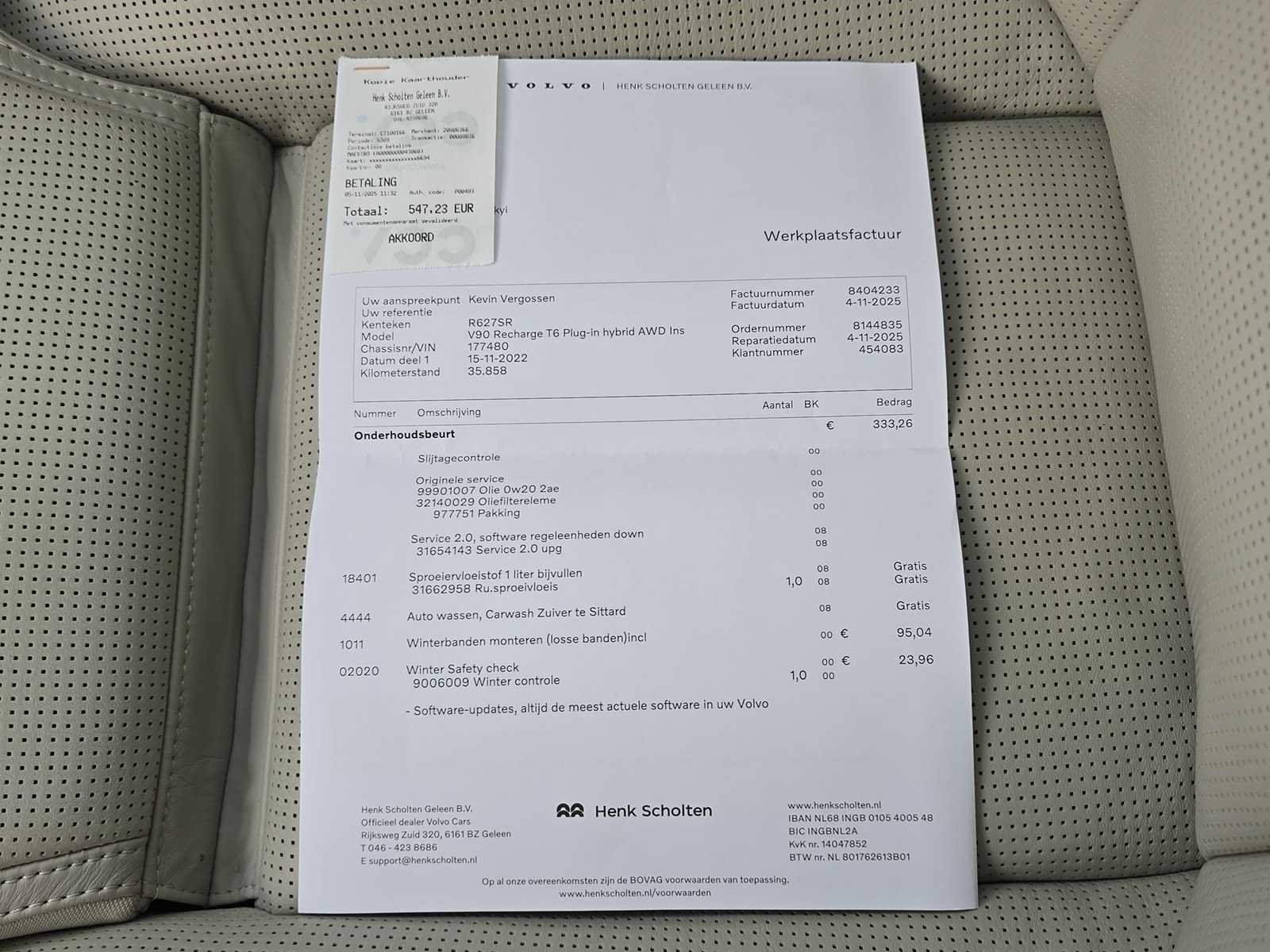 1142 : 19" 10-Spaaks Black / Diamond Cut velgen met 255/40 R19 banden 030 : Elektrisch bedienbaar glazen schuif- en kanteldak 047 : Elektrisch verstelbare bestuurderstoel met geheugenfunctie 236 : Gelamineerde zijruiten en achterruit 322 : Geïntegreerde zittingverhogers buitenste zitplaatsen achter 117 : Grafisch Head-up Display voor weergave van de ingestelde snelheid van de adaptieve cruise control, verkeersbordenherkenning en navigatie aanwijzingen 1075 : Lederlook bekleed dashboard 384 : Massagefunctie voor de voorstoelen 273 : Parkeerverwarming met timer 1033 : Premium Audio by Harman Kardon 871 : Verwarmbare voorruit 139 : Visual Park Assist (incl. 360º view) met Front "Fisheye" view 170 : Zongordijnen geïntegreerd in de achterportieren Kenteken: R-627-SR Merk: Volvo Model: V90 Type: 2.0 T6 AWD Inscription Exclusive Bouwjaar: 2022 Afgelezen kilometerstand: 40321km Cilinderinhoud: 1969cc Vermogen (kW): 186kW Brandstof: Hybride Benzine Chassisnummer: YV1PWBFVDN1177480 Laadvermogen: 2610kg NAP status: Logisch Datum eerste toelating: 2022-11-15 Datum eerste toelating (NL): 2022-11-15 APK vervaldatum: 2026-11-15 Vermogen (pk): 249hp Aandrijving: Start en rijdt Aantal zitplaatsen: 5 Maximaal trekgewicht ongeremd: 750kg Maximaal trekgewicht geremd: 2100kg Kleur: grijs Transmissie: Automaat Emissieklasse: 6 Aantal deuren: 5 Aantal sleutels: 1 Ledig gewicht: 2000kg Bruto BPM (NL): 2006€ Aantal cilinders: 4 Carrosserie: Stationwagen Carfax Link: https://was.carfax.eu/v0/api/ccdid/5100016408/svc/201/vinreg/R627SR/checksum/eyJhbGciOiJIUzI1NiIsInR5cCI6IkpXVCJ9.eyJleHAiOjE3NzQyNzg1MDB9.9KpKTnf3uNJzSTl7IwTyfgrTHm_AIH3NP_xUyyYbexE Start en rijdt: Start and drive startinformatie : Start en rijdt
