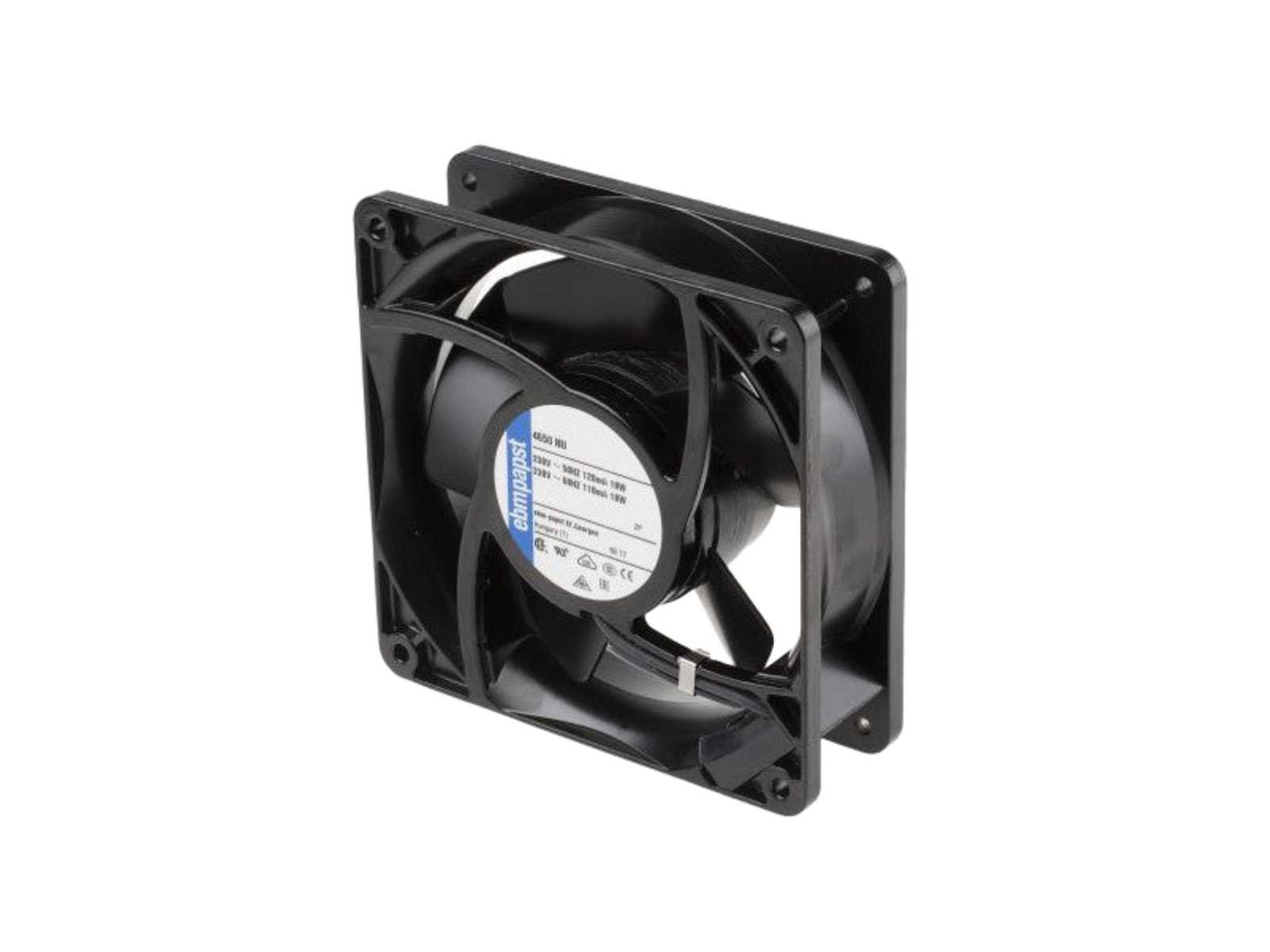 Productomschrijving: De EBM Papst AC Ventilator Square 4650NU 120 mm is een hoogwaardige axiale ventilator met een vierkante vormfactor. Deze ventilator is ontworpen voor een efficiënte luchtstroom en koeling in een breed scala aan toepassingen. Kenmerken: Vierkante vormfactor van 120 mm AC-aansluiting Hoge luchtstroom tot 94,2 CFM Laag geluidsniveau IP54-geclassificeerd voor bescherming tegen stof en water Lange levensduur Specificaties: Model: 4650NU Afmetingen: 120 x 120 x 38 mm Spanning: 230 V AC Stroomverbruik: 2,4 W Luchtstroom: 94,2 CFM Geluidsniveau: 36 dB(A) Beschermingsklasse: IP54 Lagertype: Sleeve bearing Toepassingen: De EBM Papst AC Ventilator Square 4650NU 120 mm is geschikt voor een breed scala aan toepassingen, waaronder: Industriële koeling IT- en serverruimtes Telecomsystemen Medische apparatuur Huishoudelijke apparaten Voordelen: De EBM Papst AC Ventilator Square 4650NU 120 mm biedt een hoge luchtstroom en een laag geluidsniveau. De ventilator is IP54-geclassificeerd voor bescherming tegen stof en water. De ventilator heeft een lange levensduur. Merk: EBM Product type: Ventilatoren Kleur: Zwart