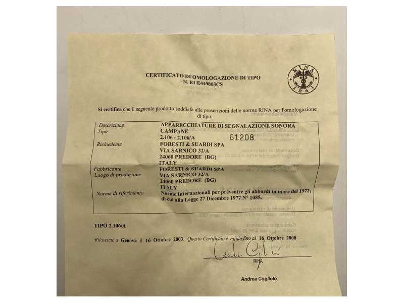 Foresti suardi brass ship bell 300mm rina approved 94 crom