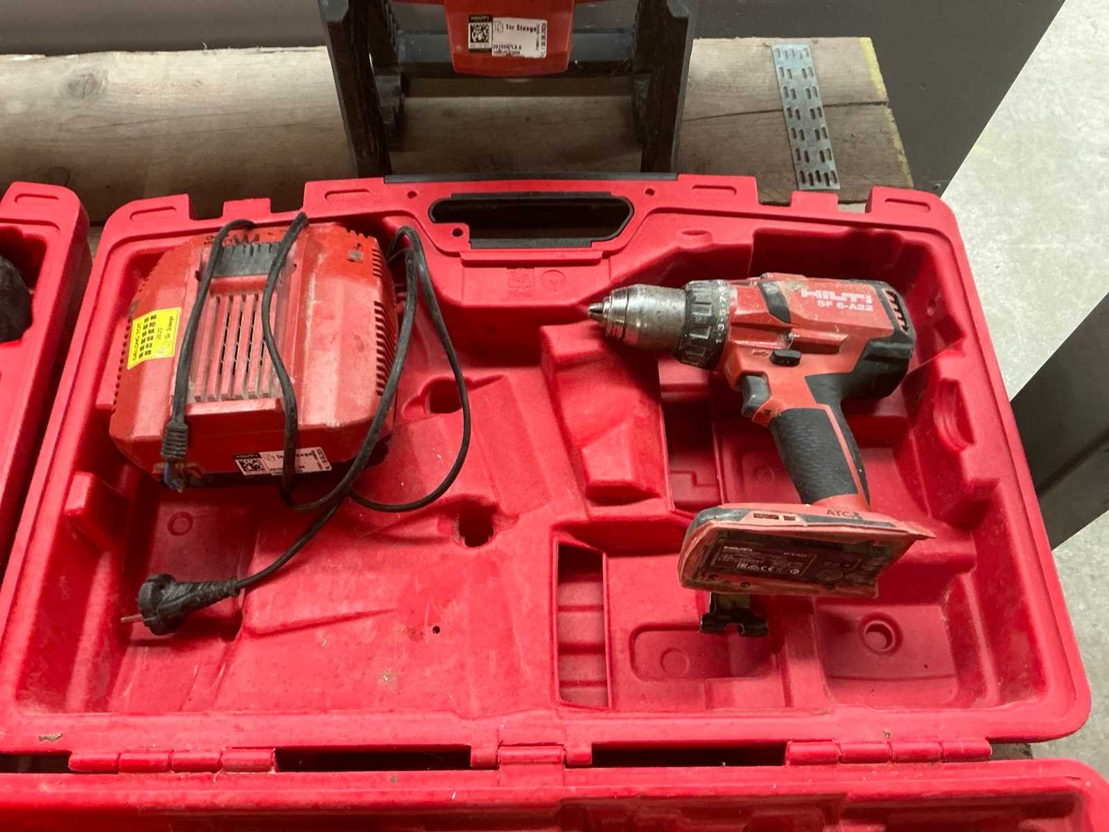 Hilti accu gereedschapset b.u.: haakse slijper, boormachine en bouwlamp in koffer