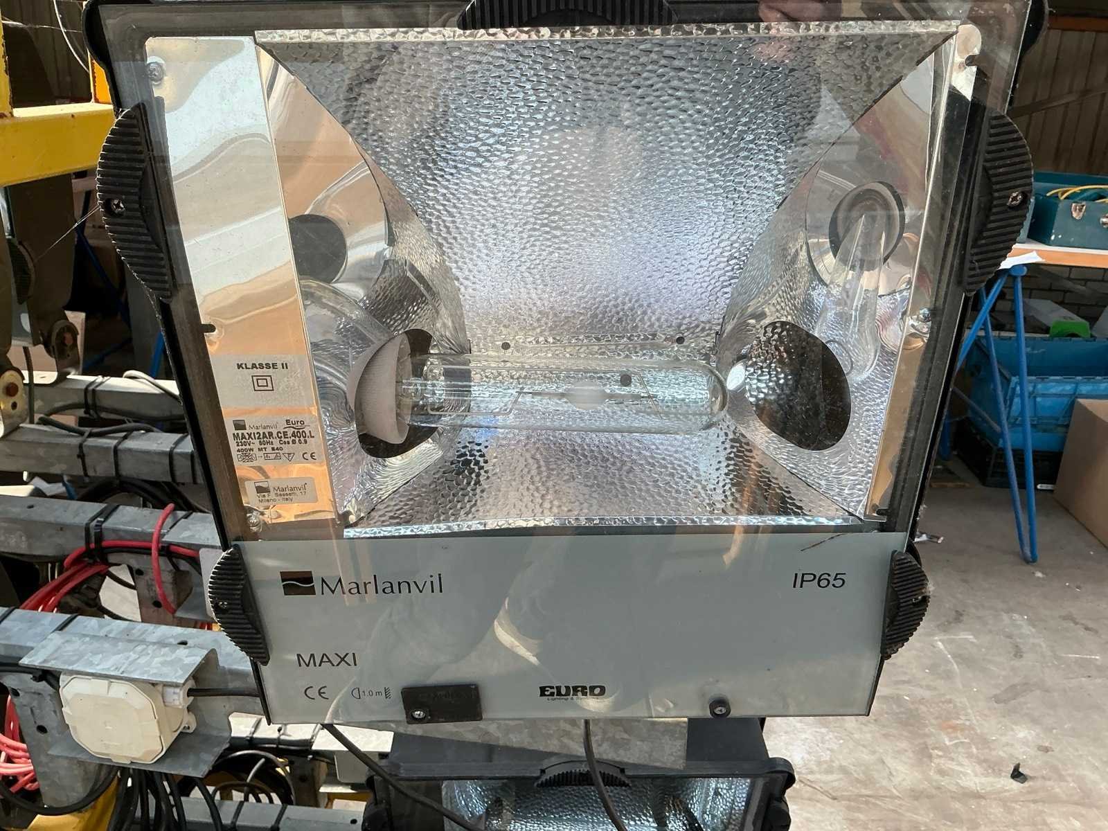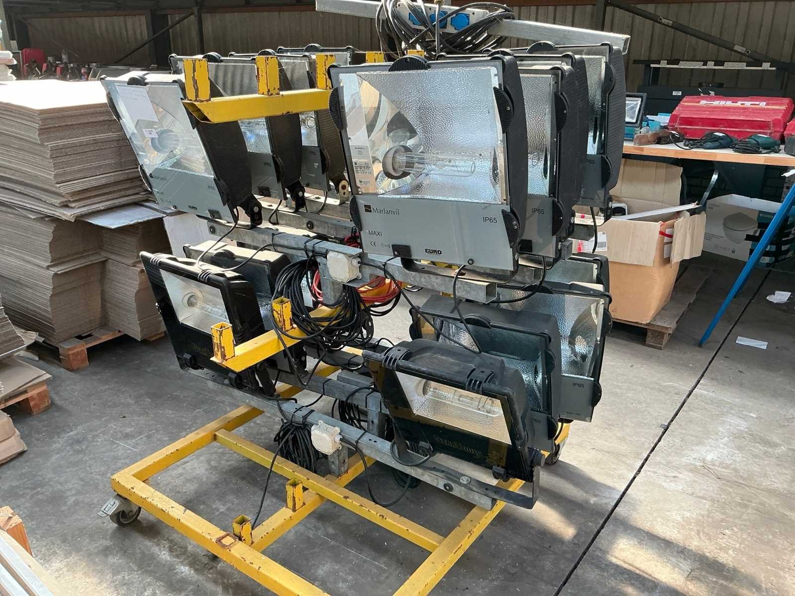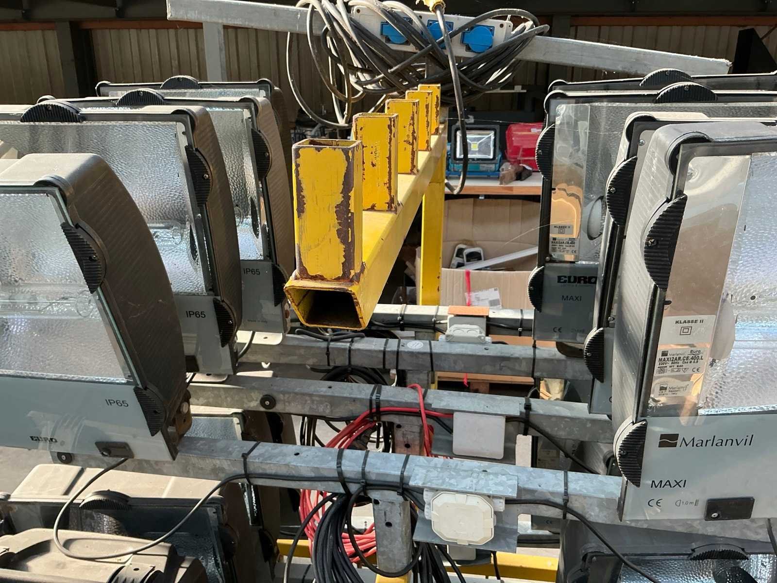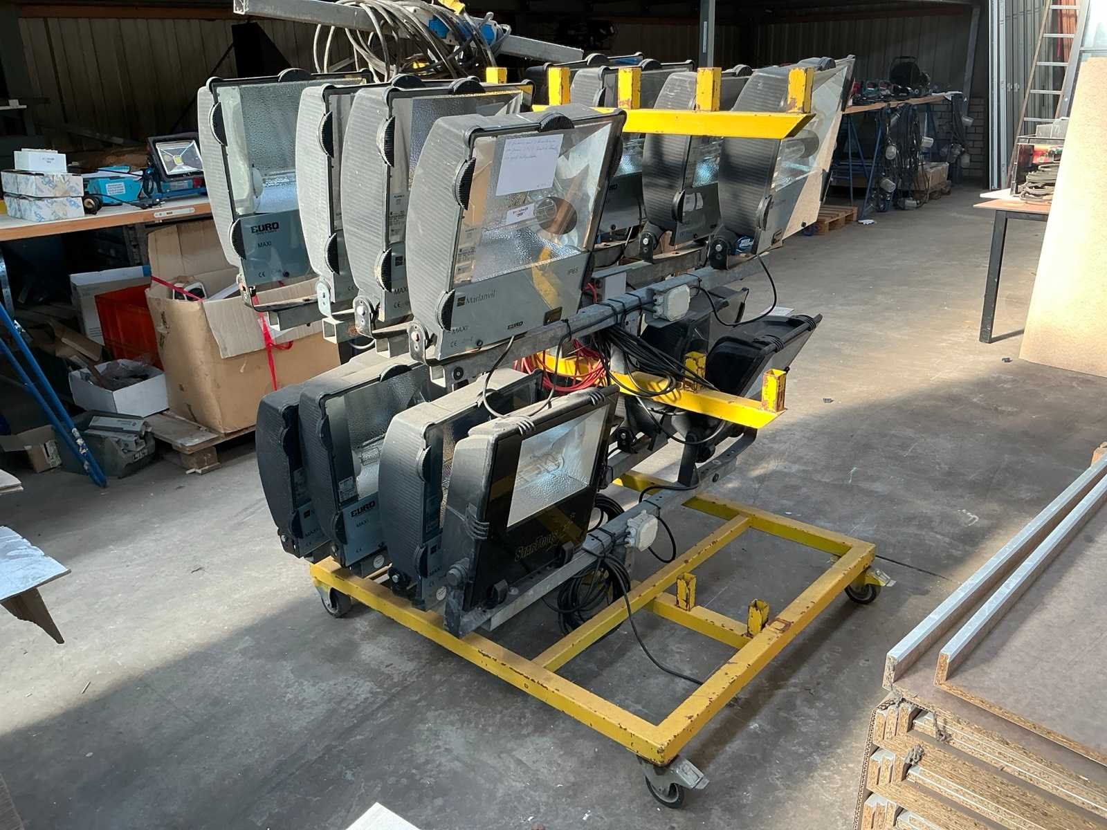 8 frames met 2 bouwlampen op geel verrijdbare bok Vermogen: 400W Aansluiting: 230V