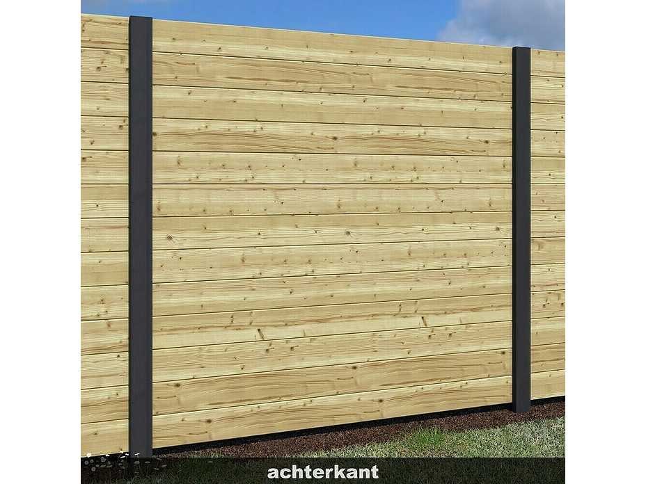 Hoogte: 190 - 205 cm Inhoud kavel: 16x Betonpaal (met 2 gleuven) – 10x10x270 cm, antraciet/grijs 15x Betonplaat – 3,5x25x180 cm, tweezijdig glad, antraciet/grijs 210 x Massieve plank – 2,8x13x180 cm, vuren geïmpregneerd, met tand en groef Verpakking: 2 pallets: 1x 270x80x100 cm 2x 230x80x120 cm Totaal gewicht: 1600 kg Product type: Betonpaal met massieve plank Gewicht: 1600kg Lengte: 2800cm Hoogte: 200cm Materiaal: Hout en beton