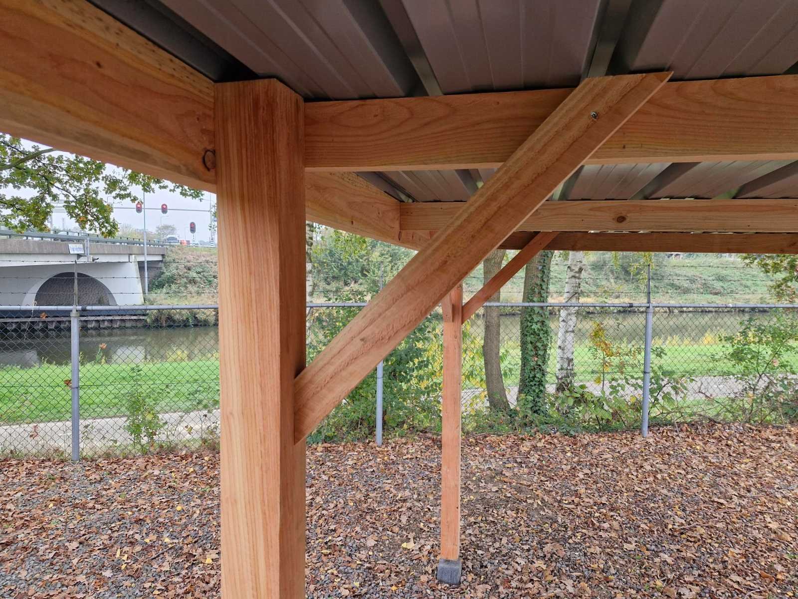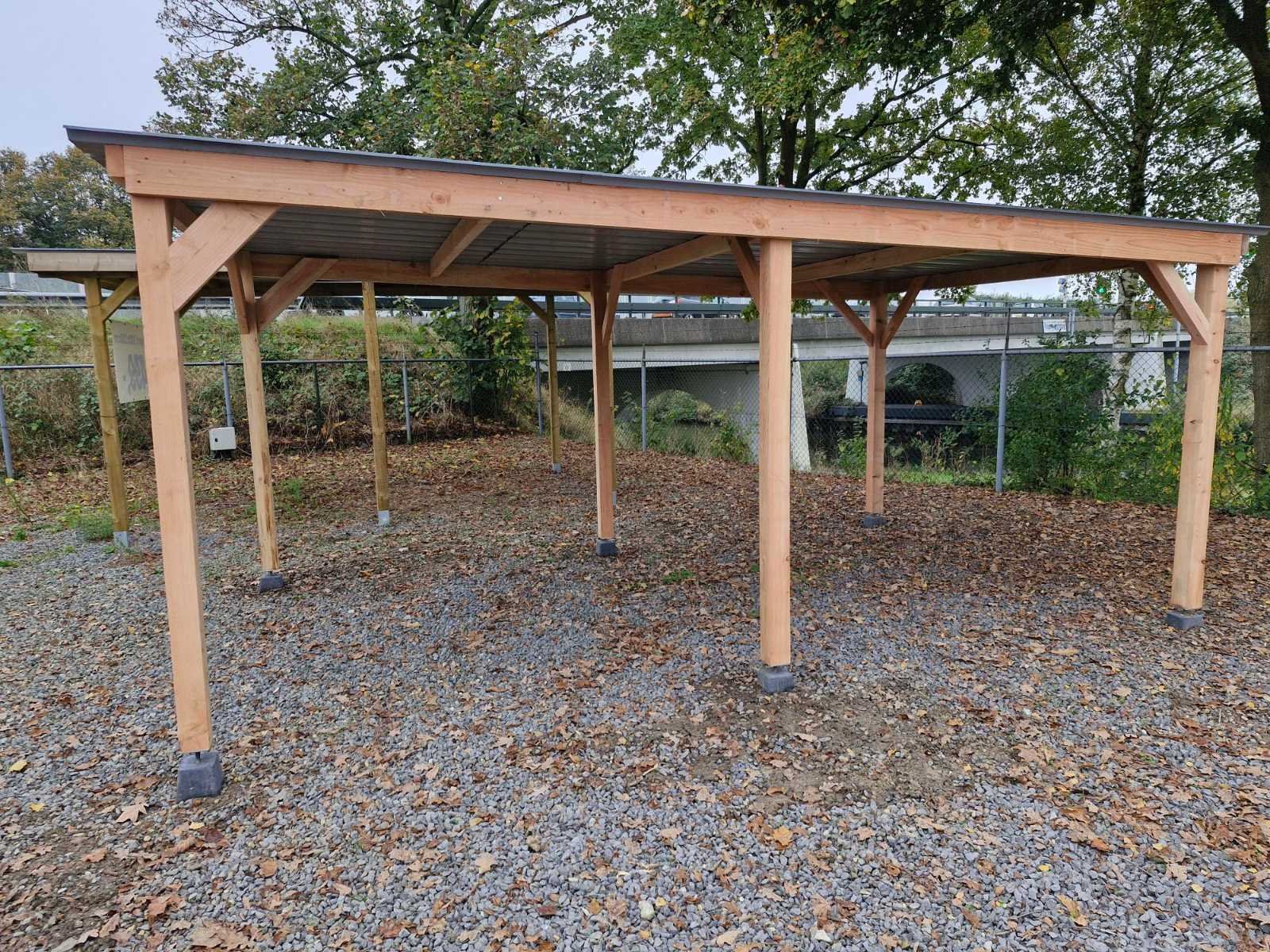 Houtsoort: Onbehandeld lariks/douglas hout Staanders: 12 stuks, 10x10 cm Spantliggers: 5x15 cm Dakbalken: 5x10 cm Dakbedekking: Damwand staalplaat, kleur grijs Bevestigingsmaterialen: Inclusief Opbouwhandleiding: Inclusief Funderingspoeren: Exclusief Levering: Bouwpakket Afmetingen pakket: 300x125x50 cm Gewicht pakket: 800 kg Hoogte: Voorzijde: 210 cm, doorloophoogte 200 cm Achterzijde: 195 cm, doorloophoogte 185 cm Model: Vrijstaand Product type: Carport Kleur: Blank Gewicht: 800kg Lengte: 1210cm Breedte: 310cm Hoogte: 210cm Materiaal: Douglas