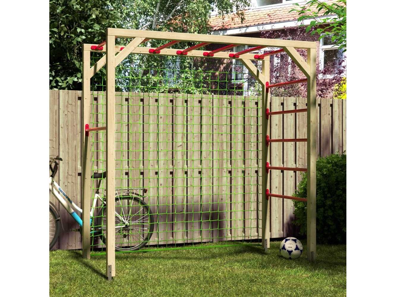Met het klimrek Bobbie kun je veel buitenplezier beleven. Klimmen en klauteren of een balletje trappen, het kan allemaal door het meegeleverde doelnet en rekstokken met poedercoating. Het klimrek Bobbie is 217 cm hoog, 210 cm breed en 103 cm diep en geschikt voor kinderen tussen de 3 en 14 jaar oud. Het maximale gewicht van klimrek Bobbie is 200 kg. Het klimrek is gemaakt van onbehandeld vuren. Vuren is de meest gebruikte naaldhoutsoort in Europa omdat het zich goed laat verwerken en een middelmatige tekening in het hout heeft. Gemiddeld genomen kent vuren kleine tot middelgrote kwasten. Wij leveren het klimrek inclusief de achtdelige grondankerset. De set bestaat uit acht grondankers inclusief schroeven en sluitringen, die aan weerszijden van de palen bevestigd worden. Wij leveren het artikel als bouwpakket, inclusief bevestigingsmateriaal. Met behulp van de stapsgewijze montagehandleiding bouw je hem gemakkelijk op. Merk: Outdoorlife Model: Bobbie Gewicht: 160kg Lengte: 103cm Breedte: 210cm Hoogte: 217cm Materiaal: Douglas