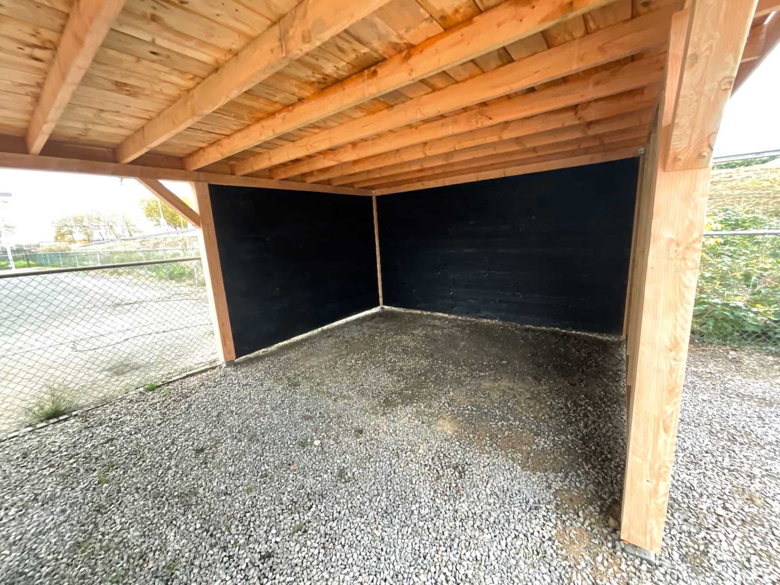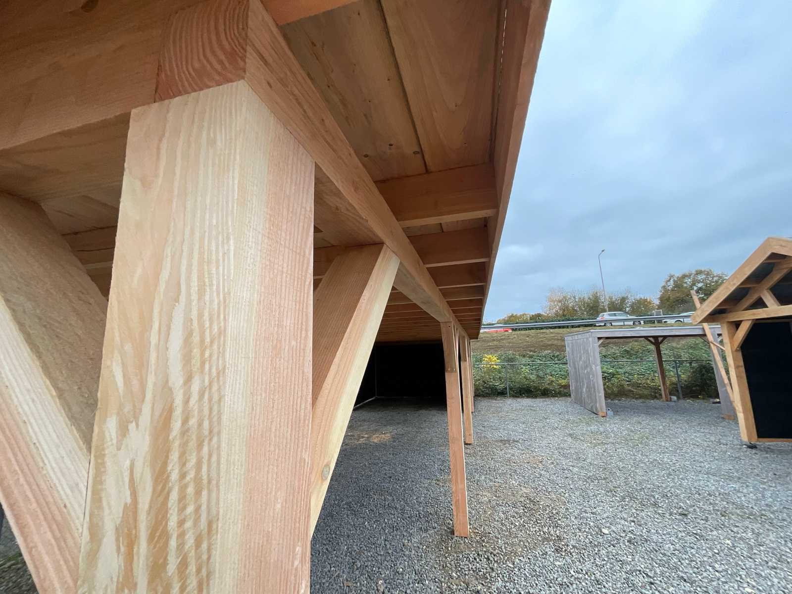 Specificaties Buitenverblijf: Palen: 150x150 mm Liggers: 120x120 mm Dakbalken: 50x150 mm Dakplanken: 18 mm dik Wanden: Zweeds rabat, zwart geïmpregneerd, bevestigd op vuren regelwerk (45x60 mm). De rabatdelen moeten bij montage nog op maat worden gezaagd. Het buitenverblijf wordt geleverd als bouwpakket, op maat gezaagd, inclusief bevestigingsmateriaal en een handleiding. Afmeting: 1800x500 cm (buitenmaat dakrand) Berging: Drie zijden dicht, totale afmeting 300x400 cm Aantal palen: 14 stuks Dakbedekking en paalhouders: Niet inbegrepen Hoogte: Doorloophoogte: 225 cm Totale hoogte: 257 cm Breedte en diepte: De opgegeven maat betreft de dakmaat. Dakoversteek: Links, rechts en voorzijde: 30 cm Achterzijde: Geen oversteek Afmetingen pakket: 125x500x140 cm (BxLxH) Gewicht: 2500 kg Model: Vrijstaand Gewicht: 2500kg Lengte: 1800cm Breedte: 500cm Hoogte: 257cm Materiaal: Douglas