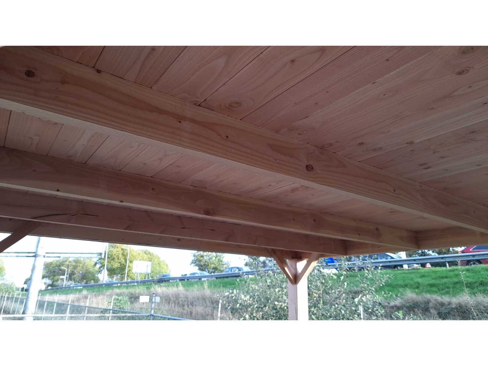 Douglas hout, Palen: 150x150 mm Liggers: 50x150 mm Dakplanken 18 mm dik Boeideel: 20x200 mm Houtsoort: Douglas Verduurzaming: Onbehandeld Bevestigingsmateriaal: true Constructieplan: true Eigen gewicht: 350 Totale afmeting L: 314 Totale afmeting Breedte: 400 Totale afmeting Hoogte: 244 Verpakking afm. l: 4000mm Verpakking afm. w: 1200mm Verpakking afm. h: 800mm