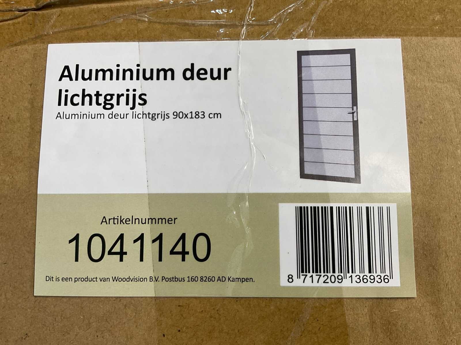 Kavel bevat: 1x Aluminium deur in aluminium frame (183 x 90 cm) 1x Hang- en sluitwerk Let op: Wordt geleverd ZONDER palen. Buitendeur: true Stomp: true Afmeting h: 1830mm Afmeting b: 930mm Aluminium: true Kleur: Lichtgrijs