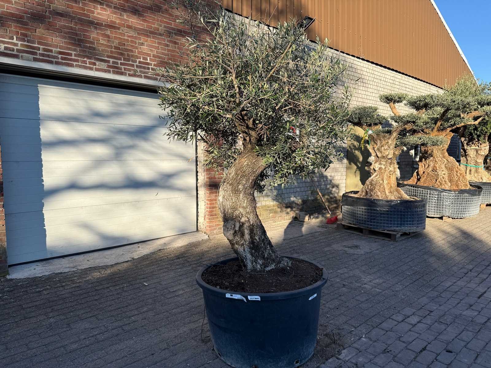 Type: Olijfboom Latijnse benaming: Olea Europaea Hoogte ca.: 250cm In pot: true Diameter ca.: 300cm Stamdikte: 100cm Leeftijd: 200 Eigen gewicht: 2000