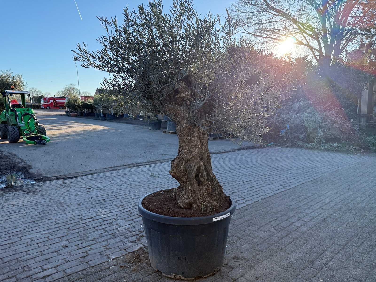 Type: Olijfboom Latijnse benaming: Olea Europaea Hoogte ca.: 250cm In pot: true Diameter ca.: 300cm Stamdikte: 100cm Leeftijd: 200 Eigen gewicht: 2000