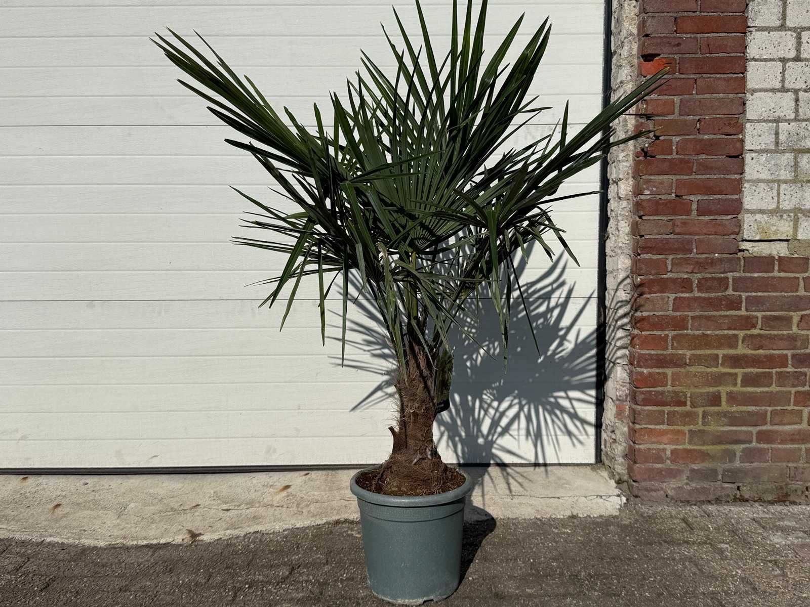 Type: Chinese Waaierpalm Latijnse benaming: Trachycarpus Fortunei Hoogte ca.: 150cm In pot: true Diameter ca.: 75cm Stamdikte: 8cm Leeftijd: 10