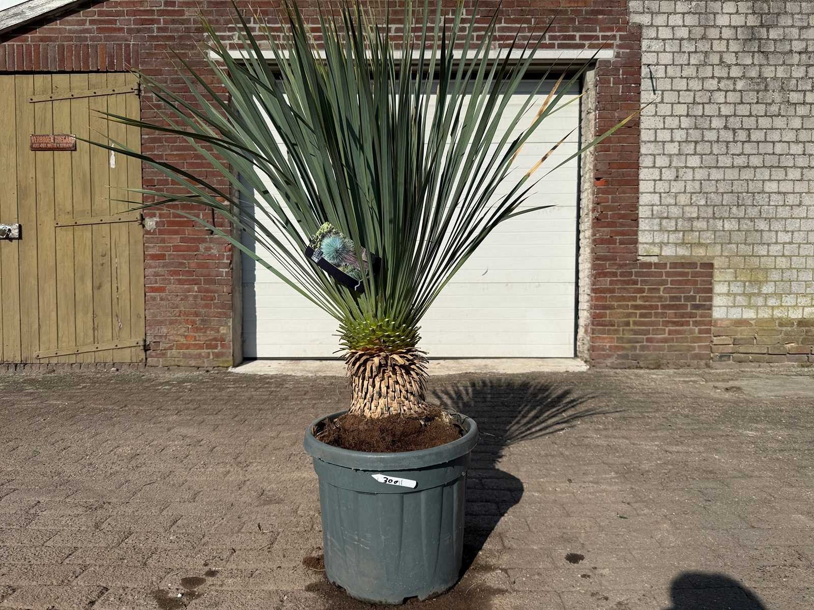 Type: Palmlelie Latijnse benaming: Yucca Rostrata Hoogte ca.: 70cm In pot: true Diameter ca.: 30cm Leeftijd: 5 Eigen gewicht: 50