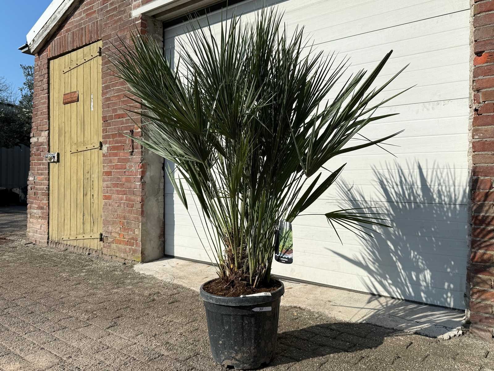 Type: Europese Dwergpalm Latijnse benaming: Chamaerops Humilis Hoogte ca.: 150cm In pot: true Diameter ca.: 200cm Stamdikte: 25cm