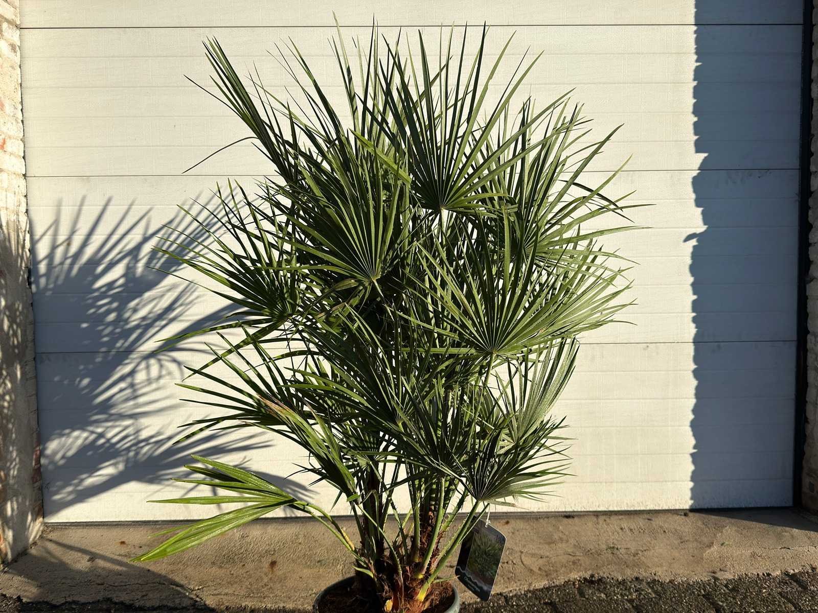 Type: Europese Dwergpalm Latijnse benaming: Chamaerops Humilis Hoogte ca.: 150cm In pot: true Diameter ca.: 200cm Stamdikte: 25cm