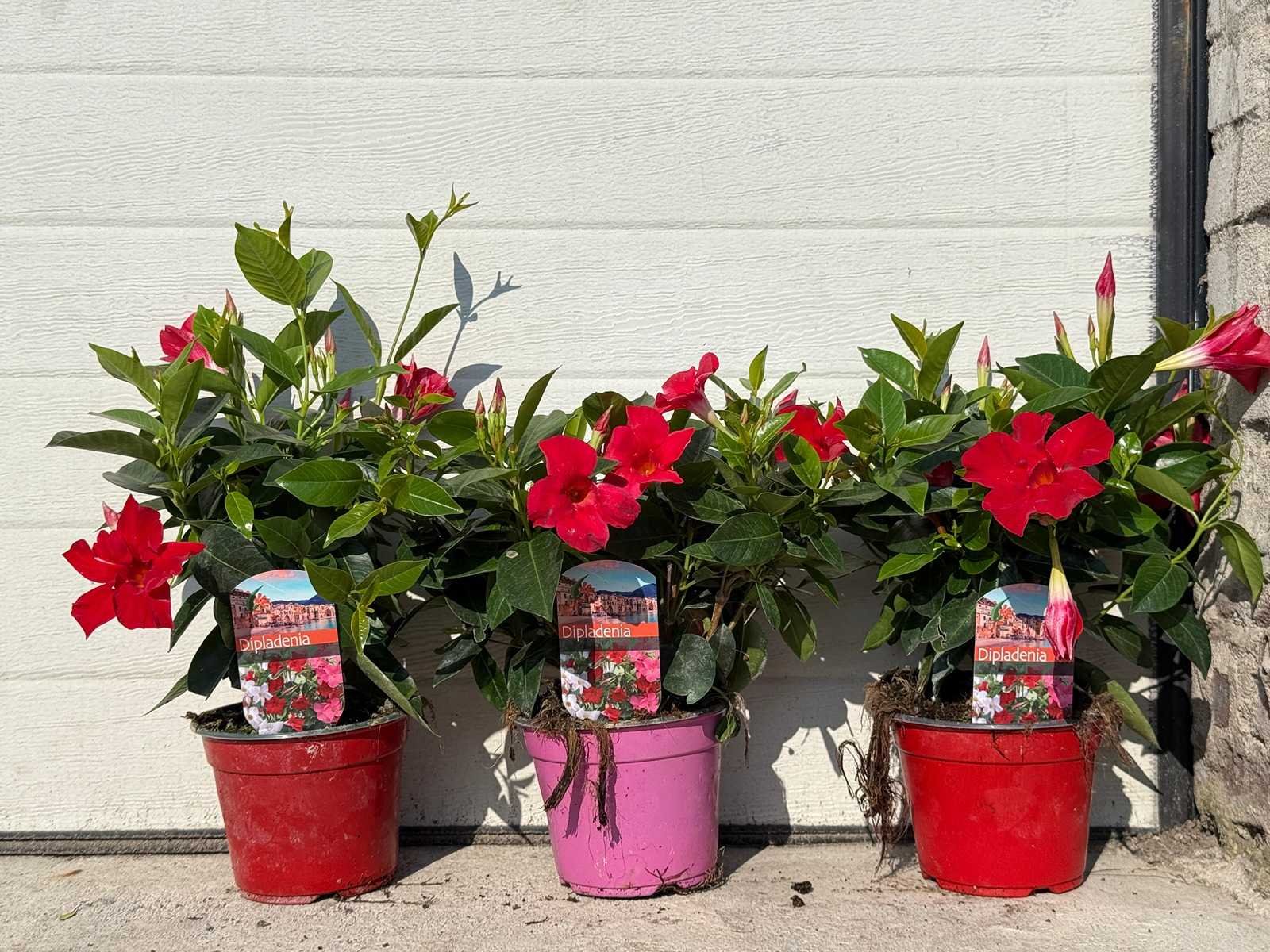 Mandeville mix - dipladenia rio mix - 1x roze/2x rood hoogte ca. 40cm (3x)
