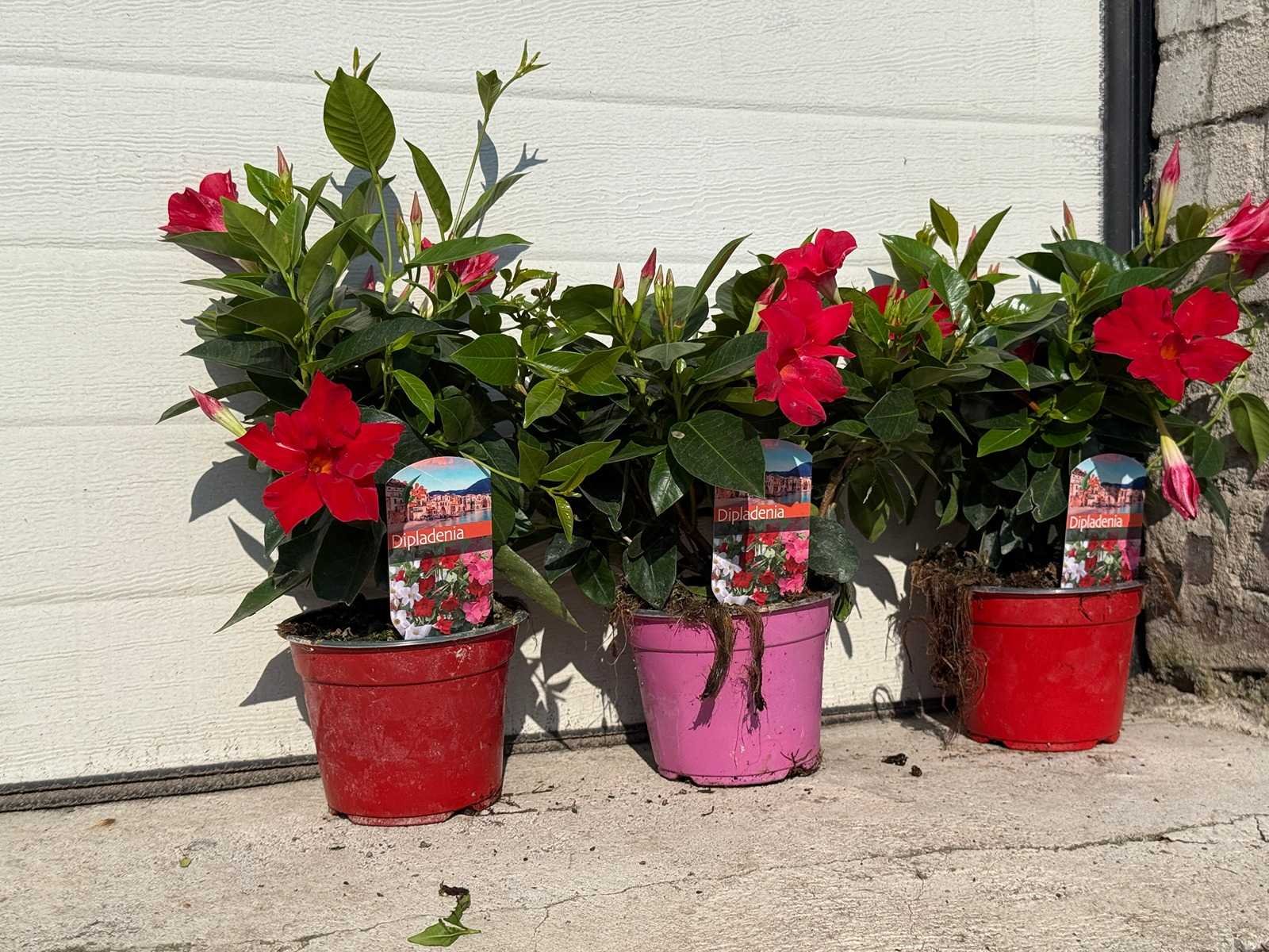 Mandeville mix - dipladenia rio mix - 1x roze/2x rood hoogte ca. 40cm (3x)