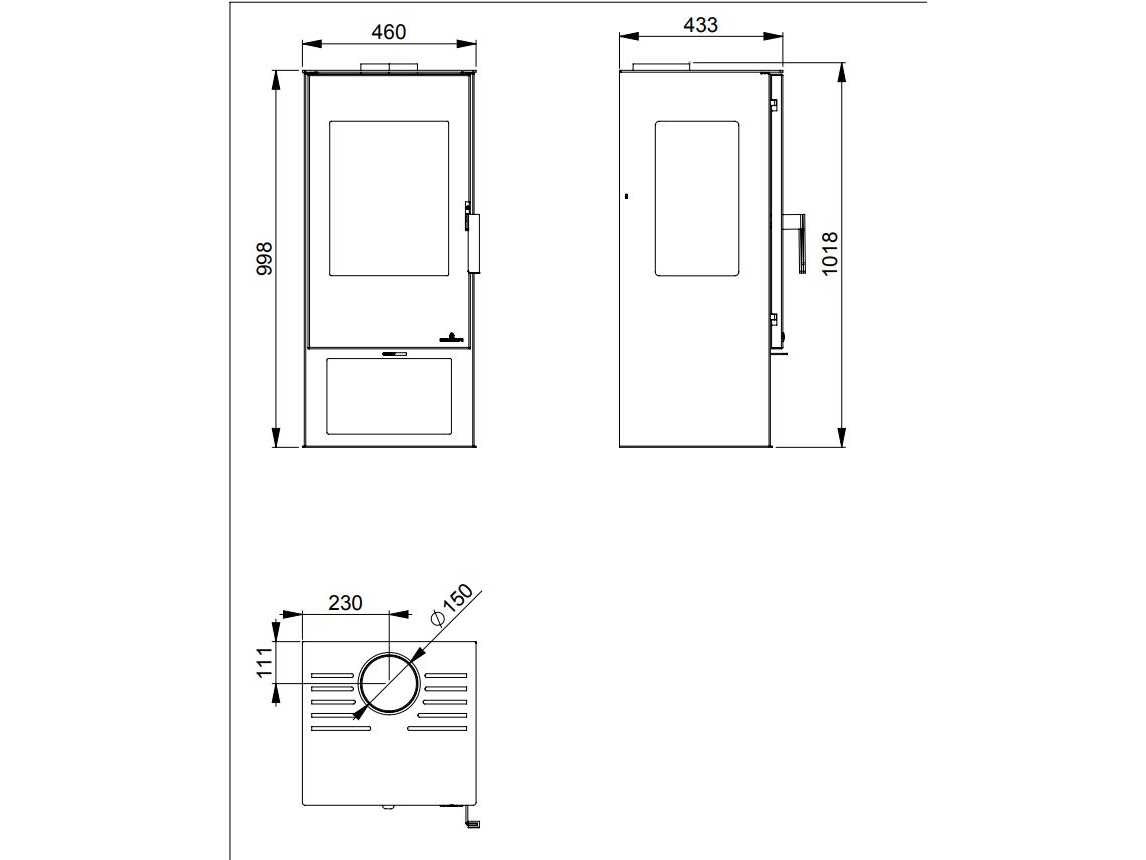 Merk: Bronpi Rendement: 81% Vuurzicht: 3-zijdig Rookgasaansluiting: 150mm Bovenaansluiting: true Vrijstaand: true Vermogen: 7kW Totale afmeting lxbxh: 433x460x1018mm Eigen gewicht: 74kg