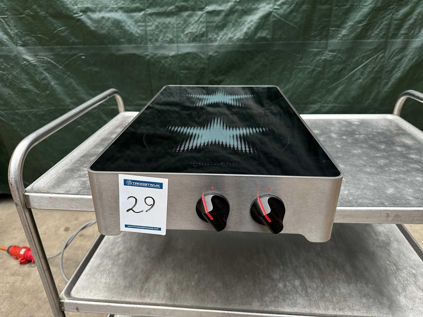 Capaciteit: 2 Zones Ø 26 cm ; 380V Merk: Menu System Model: MS-i-20 Lengte: 40cm Breedte: 70cm Hoogte: 20cm Materiaal: RVS