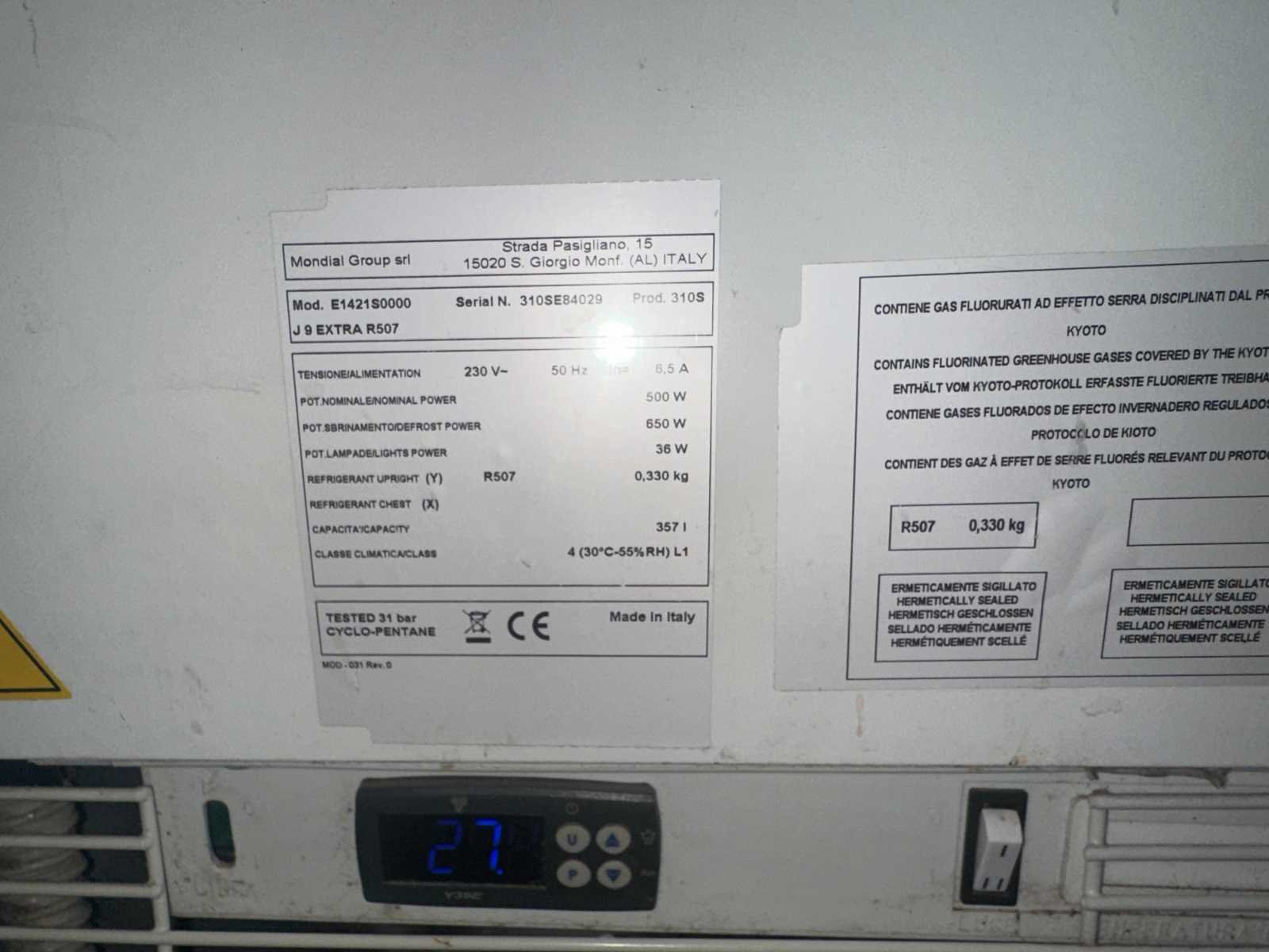 J 9 EXTRA, STATISCHE KOELING, 9 X 5-LITER BAKKEN, KOELMIDDEL R507 ;9 verschillende soorten schepijs in bakken van 5 liter presenteren. ; Temperatuurbereik van -15 tot -20 Celsius ; °C: -20 / -15 °C ; Algemene inhoud vrieskast, L: 423 Liter ; Inhoud vrieskast Netto, L: 357 Liter ; 500W / 10 kWh/dag ; Beperkt getest maar werkt naar behoren bij het aansluiten op stroom Merk: Framec Type: J9 Extra Mobiel: true Ingebouwde koelcompressor: true Temperatuurbereik max.: -20°c Aansluiting: 230V Temperatuurbereik min.: -15°c Digitale uitlezing: true Totale afmeting L: 1565mm Totale afmeting Breedte: 723mm Totale afmeting Hoogte: 1253mm Capaciteit.: 423l