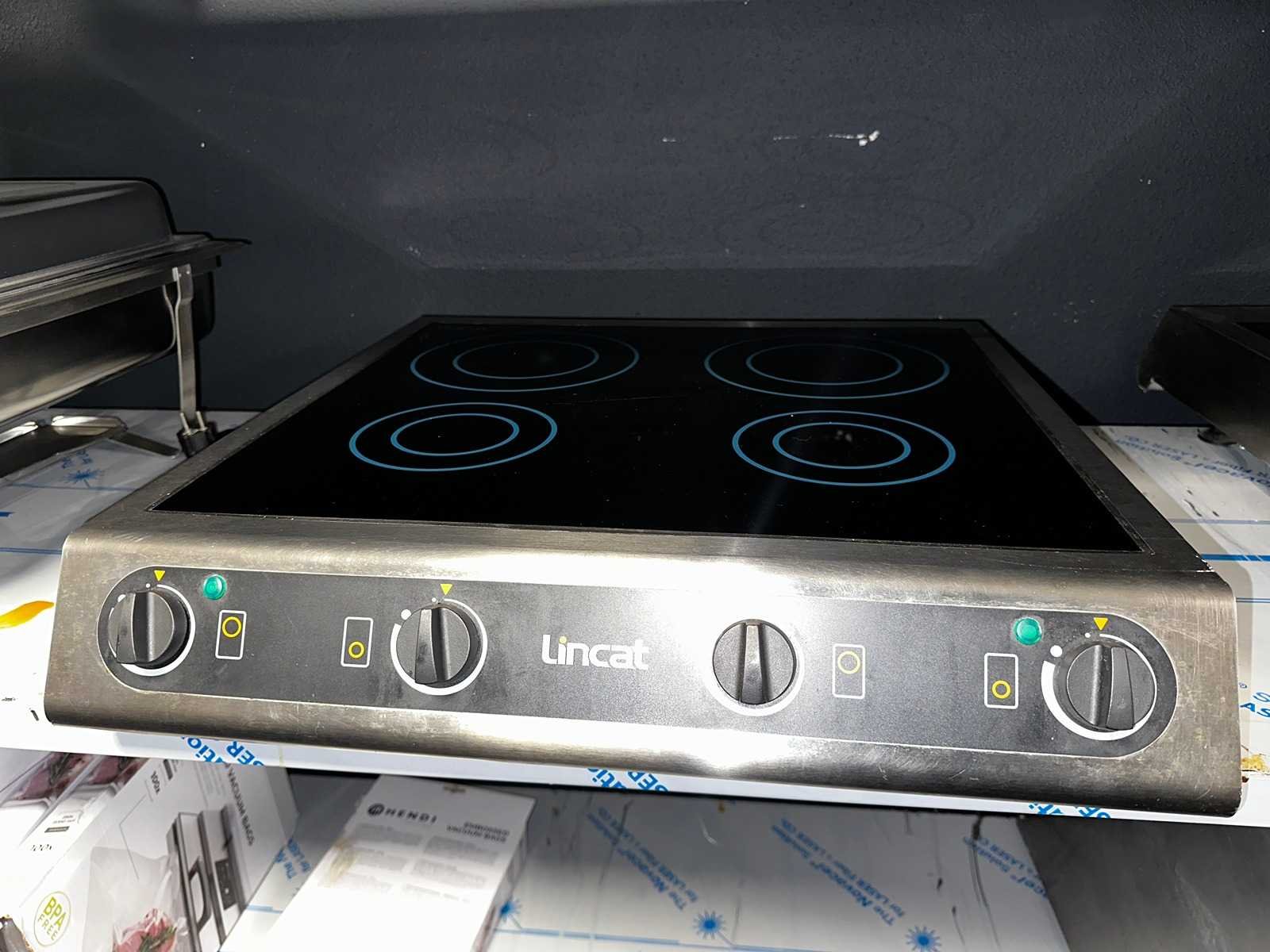 4 zones, 2 groot 2 klein ; Merk: Lincat Type: IH-42 Lengte: 60cm Breedte: 65.5cm Hoogte: 12cm Aansluiting: 230