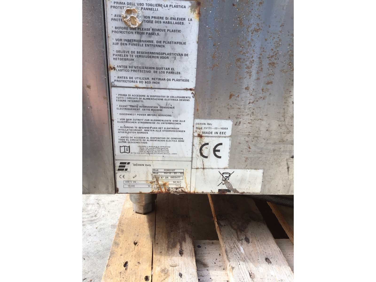 380V ; 10 niveaus ; Merk: Dexion Type: FEMD107 Rvs: true Elektrisch: true Vermogen: 15,4kW Aansluiting: 380V Totale afmeting L: 942mm Totale afmeting Breedte: 942mm Totale afmeting Hoogte: 1070mm