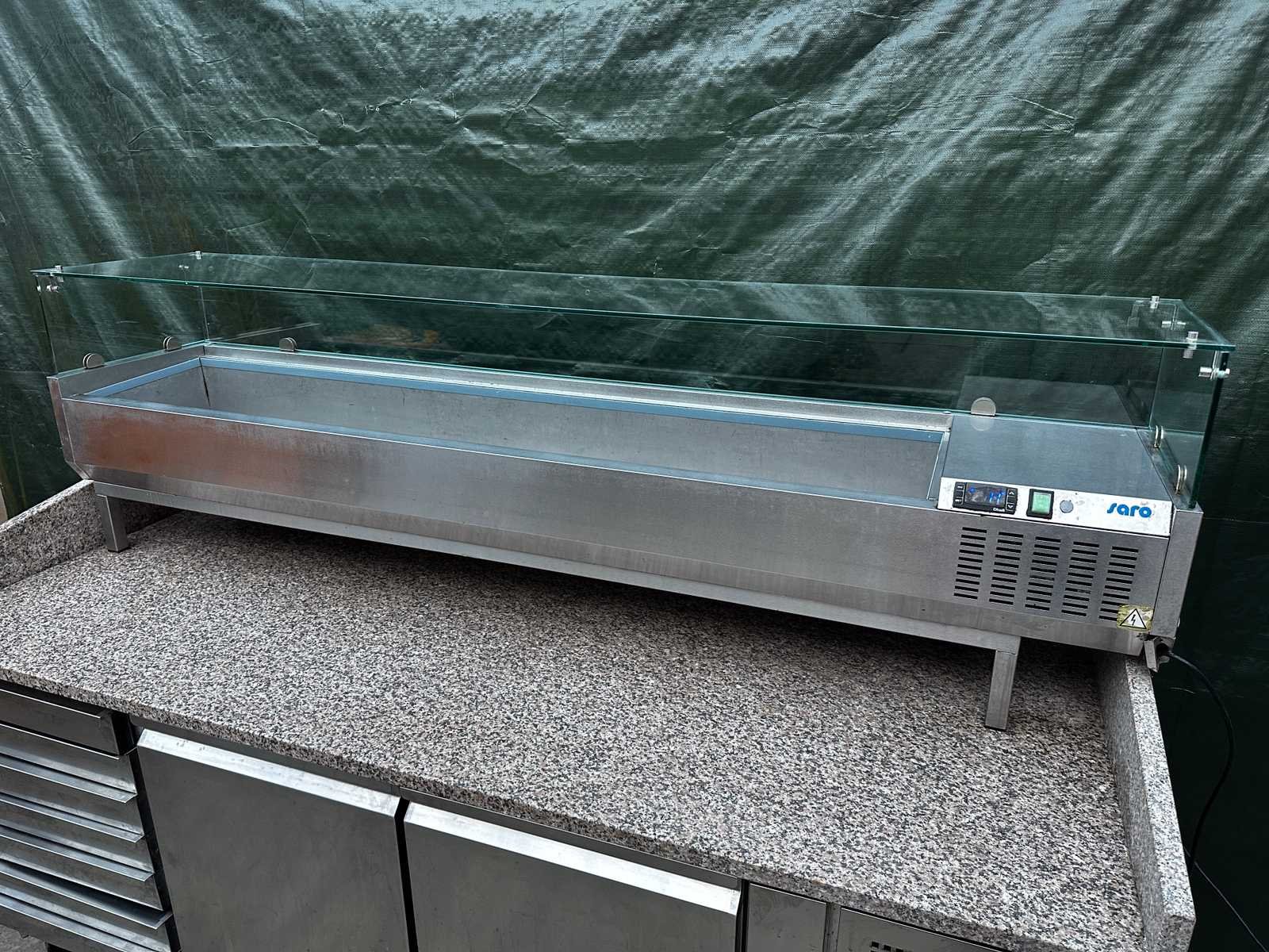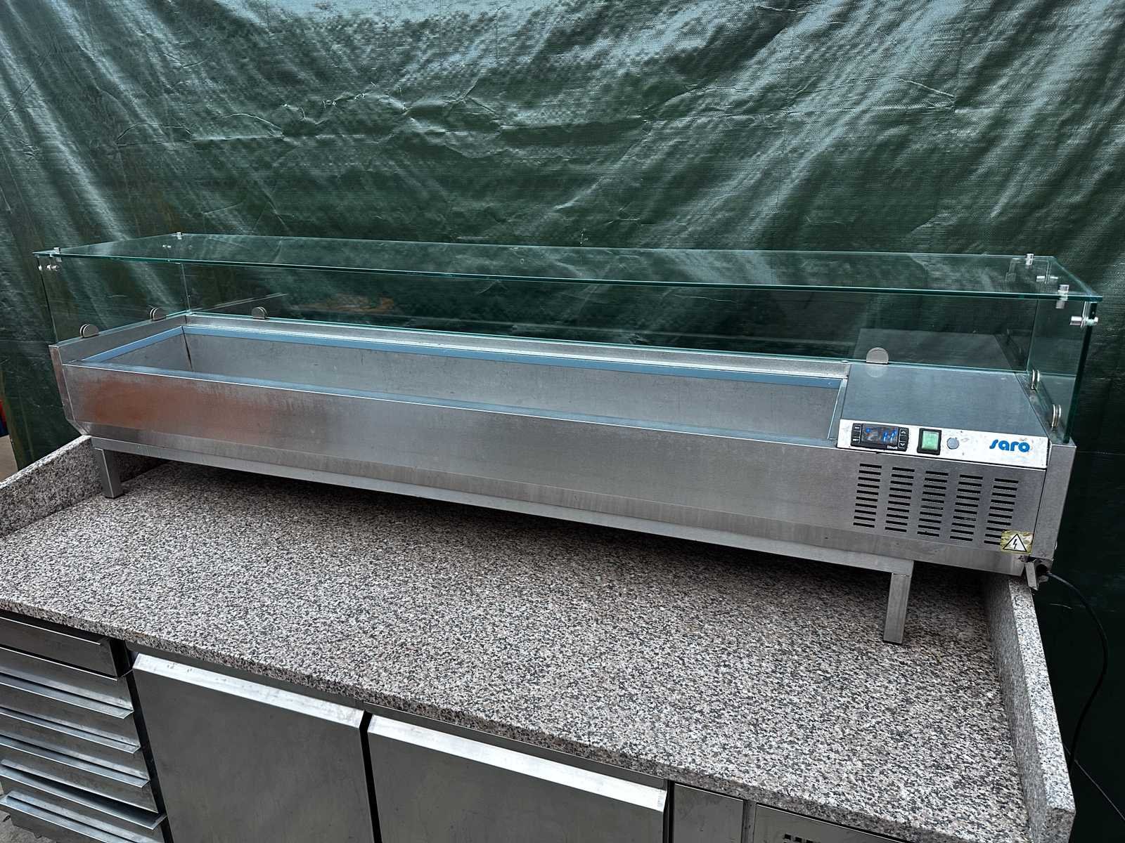 Pizzawerkbank met blad en opzet koelvitrine ; 7 laden ; 2 klapdeuren Merk: Polar Digitale uitlezing: true Ingebouwde koelcompressor: true Rvs: true Aansluiting: 230V Mobiel: true Aantal laden: 7pcs Lengte: 203cm Breedte: 80cm Hoogte: 143cm