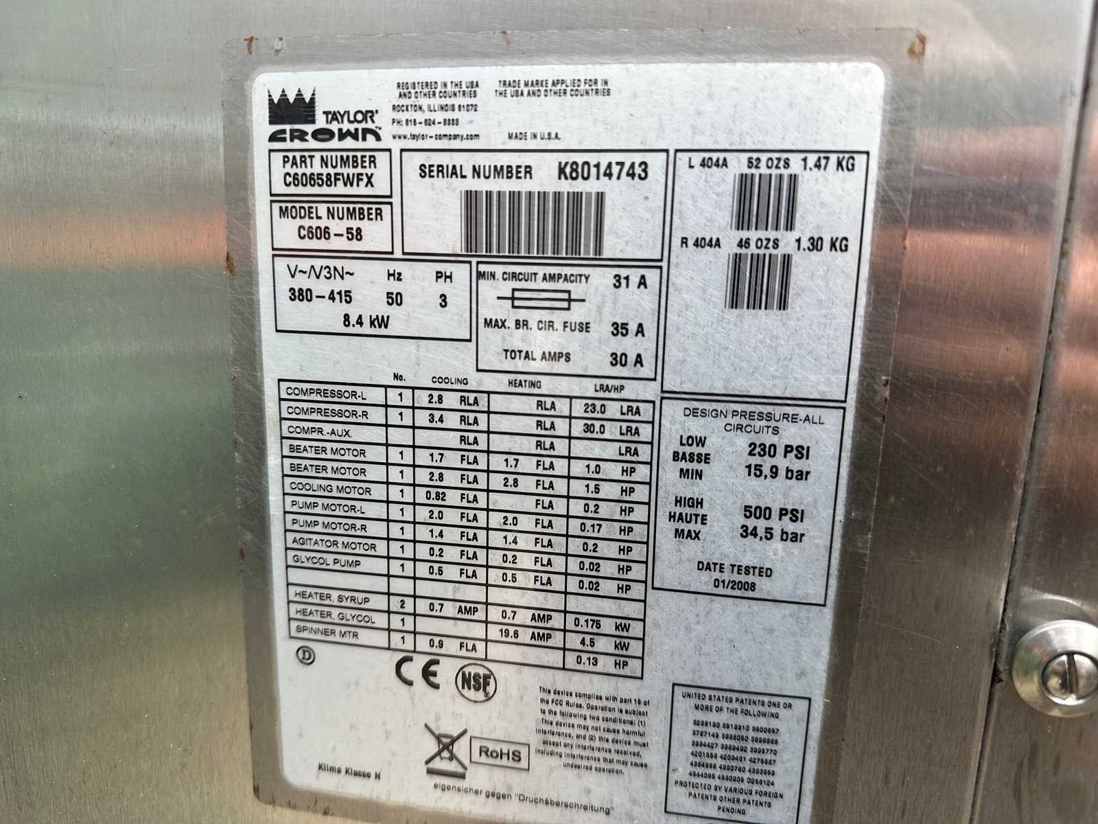Mist een deur ijsmachine 400 volt. 4 kW Merk: Taylor Type: C606 Aansluiting: 380V