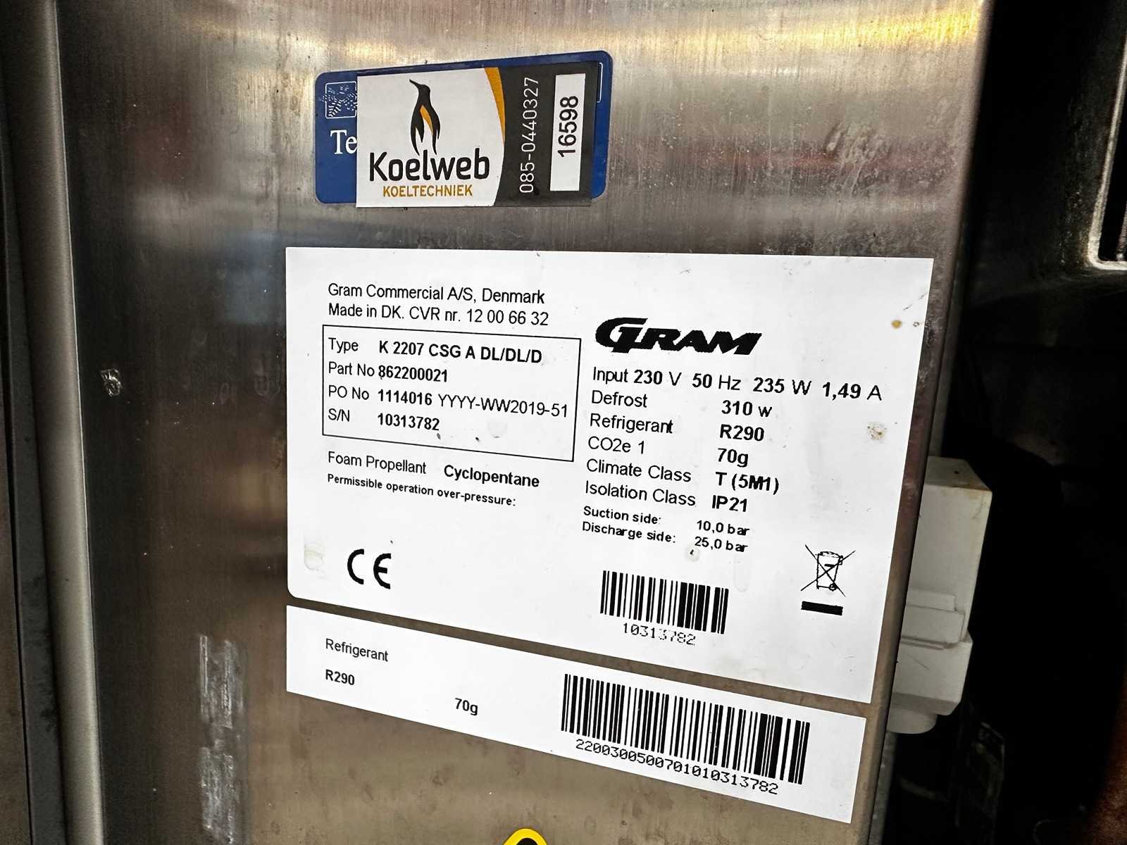 2 deuren 4 laden ; 230v 235W ; 2019 model ; zonder stekker Merk: Gram Type: K 2207 CSG B Bouwjaar: 2019 Totale afmeting L: 216cm Totale afmeting Breedte: 70cm Totale afmeting Hoogte: 78cm Digitale uitlezing: true Ingebouwde koelcompressor: true Rvs: true Aansluiting: 230V Aantal laden: 2pcs