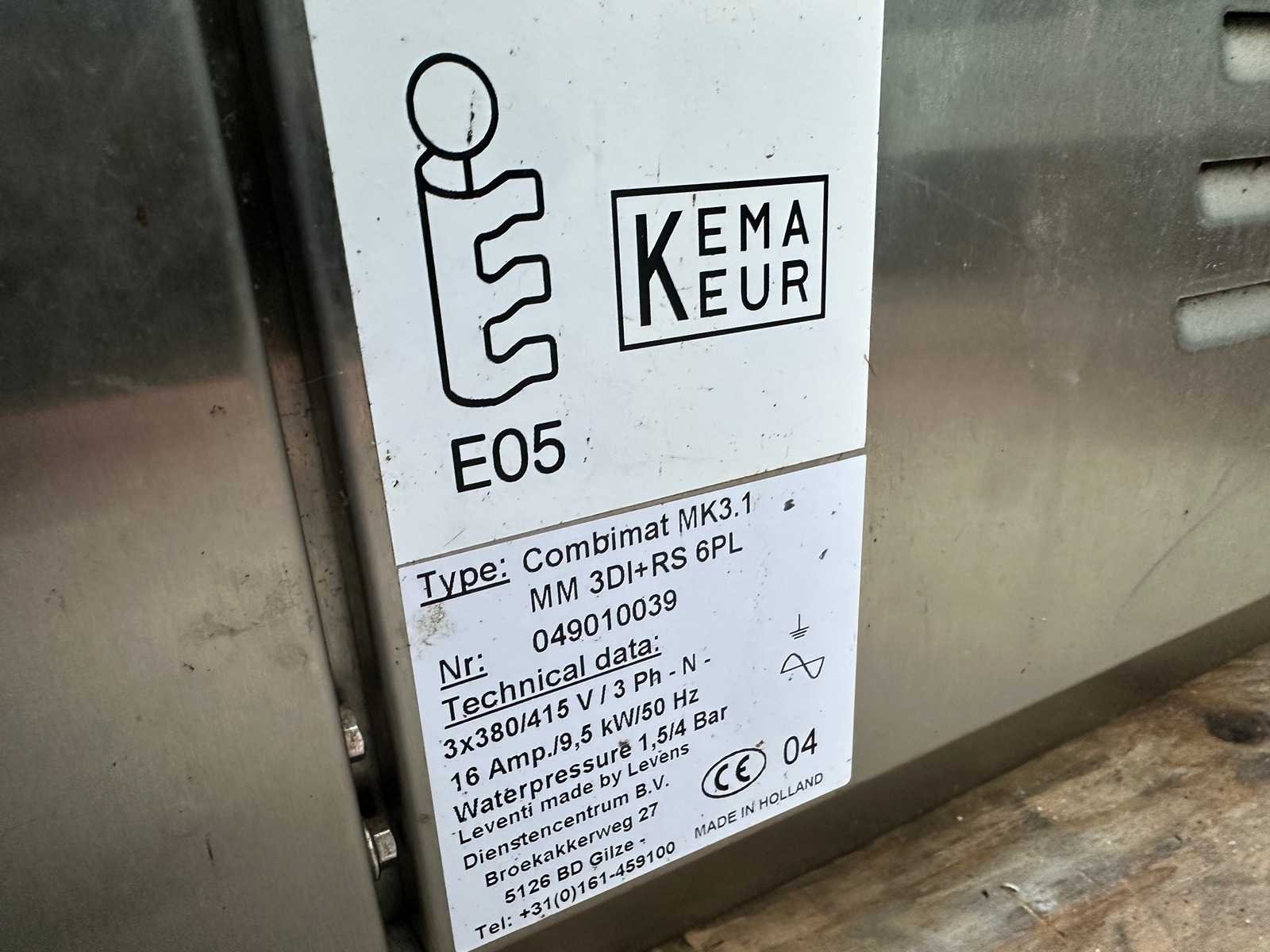 Merk: Leventi Type: Combimat MK3.1 6PL Aantal niveau's: 6 Vermogen: 9500W Aansluiting: 380V Elektrisch: true Rvs: true Totale afmeting L: 970cm Totale afmeting Breedte: 850cm Totale afmeting Hoogte: 105cm