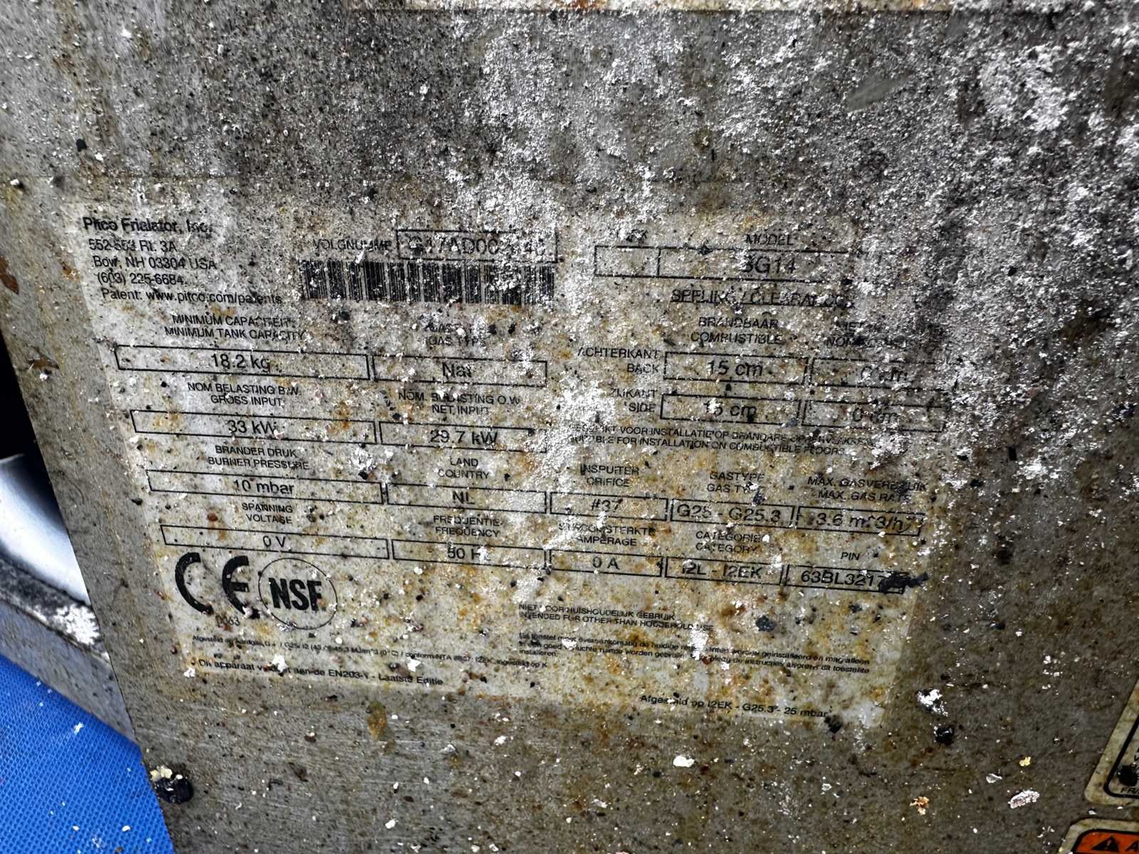 33kW GAS Merk: Pitco Model: SG14