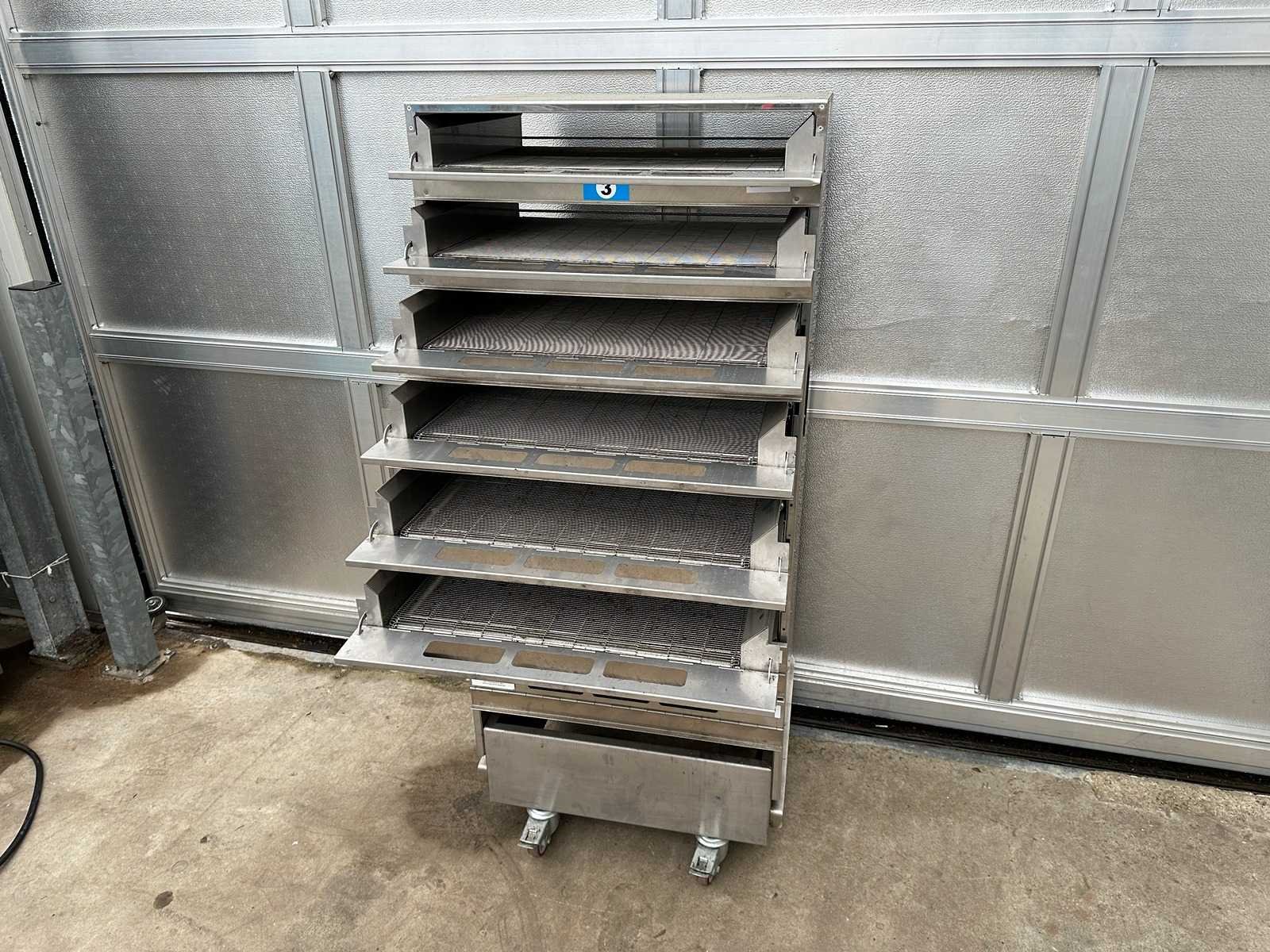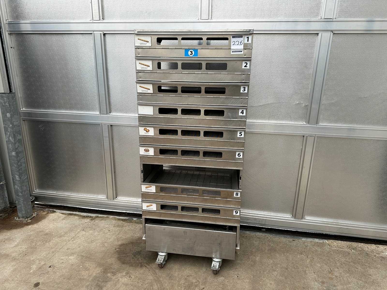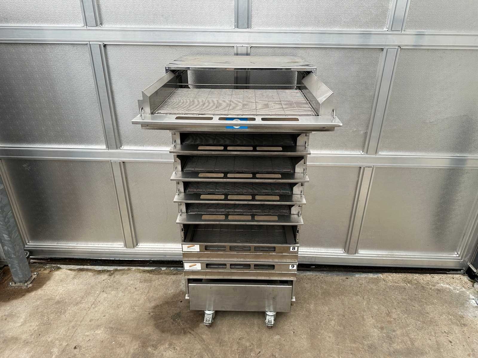 Mobiele broodjeskar 8 niveaus met band voor uitgifte ; Passend bij broodbakmachine kavel 262