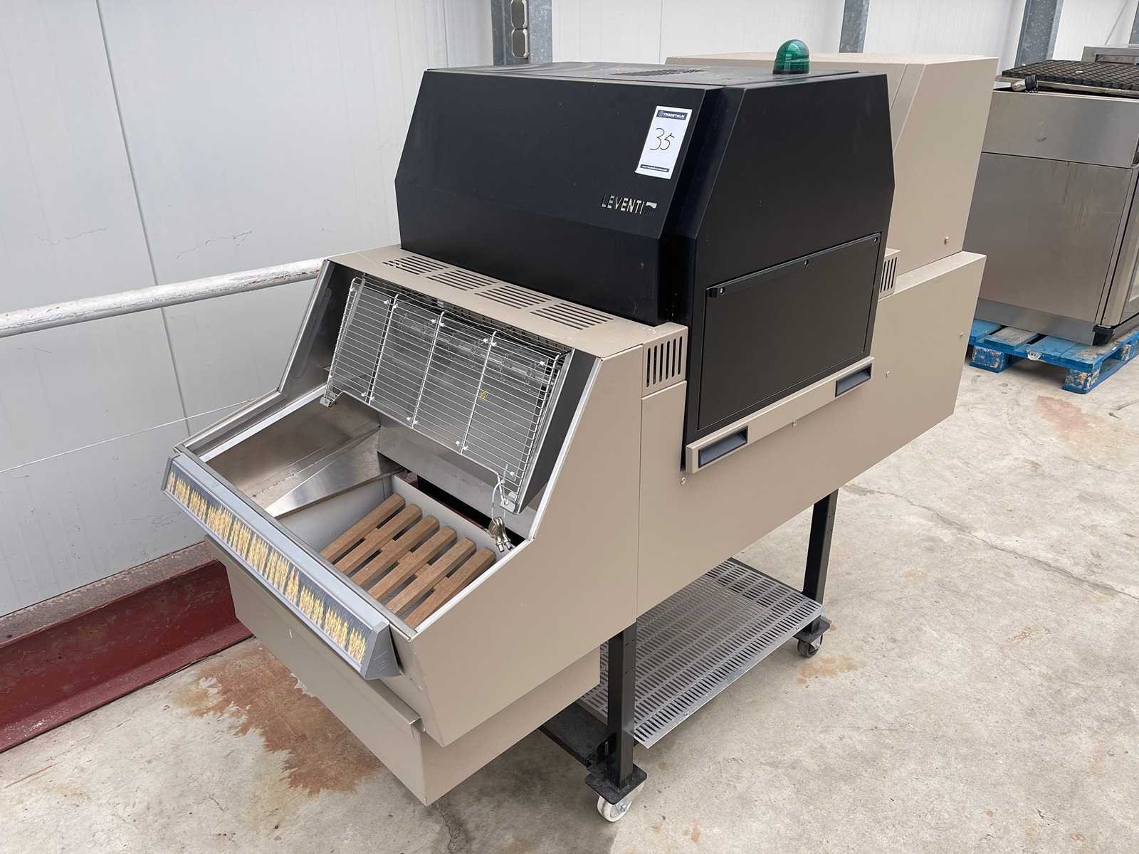 380V ; De bakermatic is bedoeld om te bakken van kleine korstbroodjes.Door een trilplaat bewegen de broodjes op de transportband. Tijdens het transport door de oven worden de broodjes afgebakken. Tenslotte worden de broodjes geleverd in een mandje aan zijkant. ; Niet getest Merk: Leventi Type: Bakermatic Aansluiting: 380V Totale afmeting L: 2000mm Totale afmeting Breedte: 800mm Totale afmeting Hoogte: 150mm