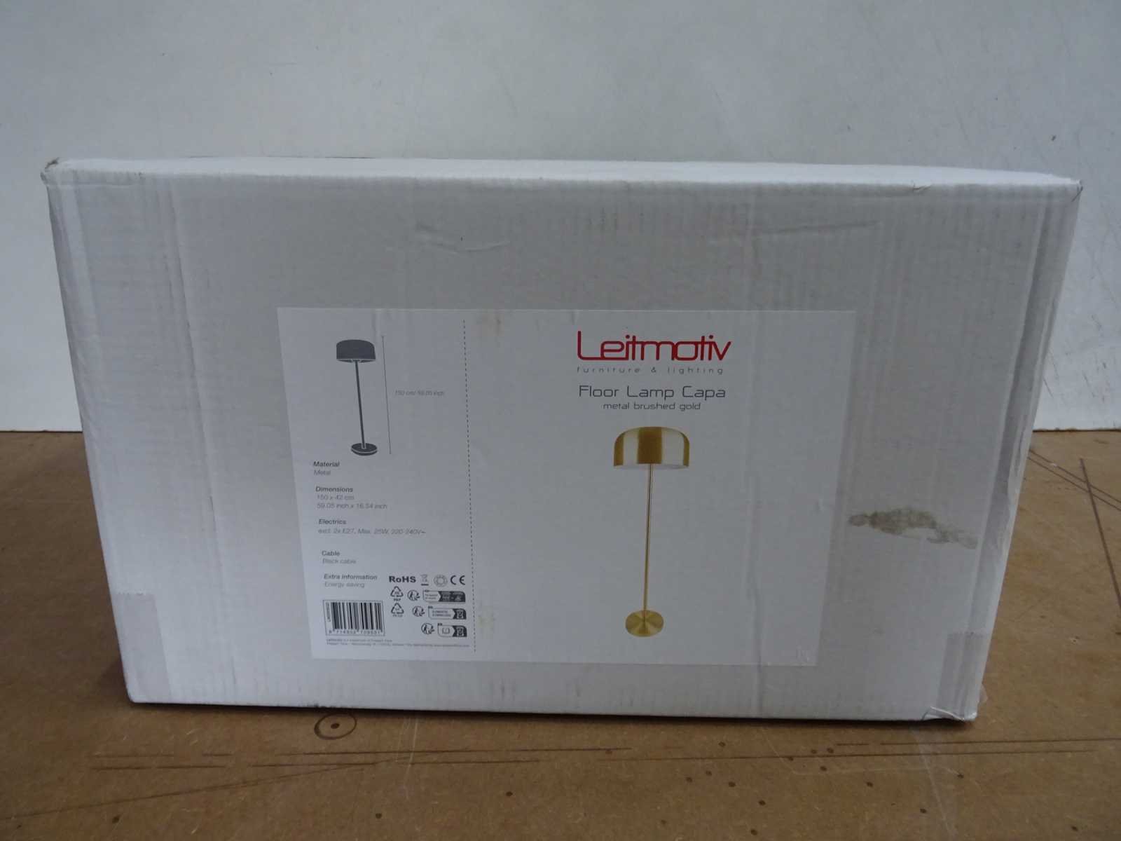 EAN: 8714302709531 Merk: Leitmotiv Model: Capa Fitting: E27 Kleur: goud Breedte: 42cm Hoogte: 150cm Materiaal: ijzer